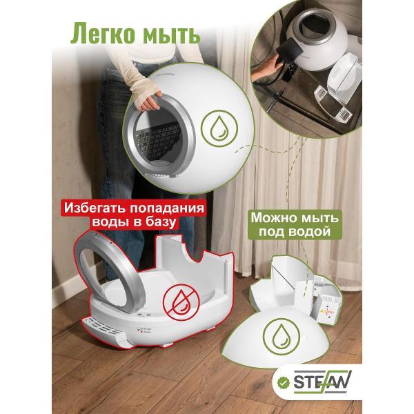 Туалет предназначен исключительно для домашнего использования. Для автоматического лотка предусмотрено подключение к сети и управление через русифицированное приложение. Туалет подойдет для кошек весом более 1кг и старше 3х месяцев, чтобы датчики лотка смогли обнаружить животное.
