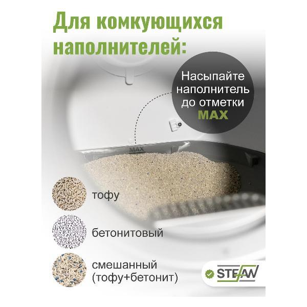 Автолоток можно использовать с любым видом комкующегося наполнителя. В комплекте идут 2 угольных фильтра и 2 мешка для мусора. После того как кошка сходит в туалет, запускается уборка. Наполнитель просеивается через специальную сетку. Все отходы попадают в пакет для мусора. Далее устройство переходит в спящий режим до следующего использования. По мере заполнения корзины для отходов ее необходимо очищать. Обязательно отключайте лоток от сети электропитания перед очисткой.