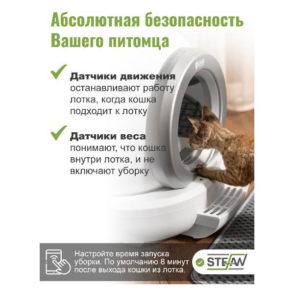 Умный самоочищающийся туалет-лоток для кошек автоматически убирает за питомцем сразу после того, как он сходит в туалет.
