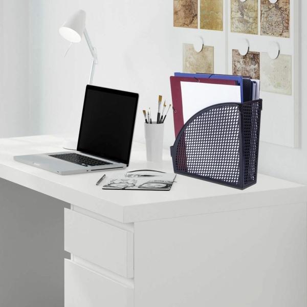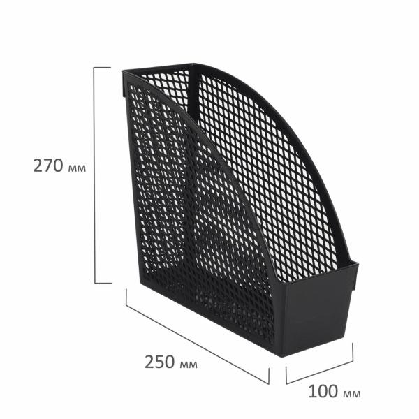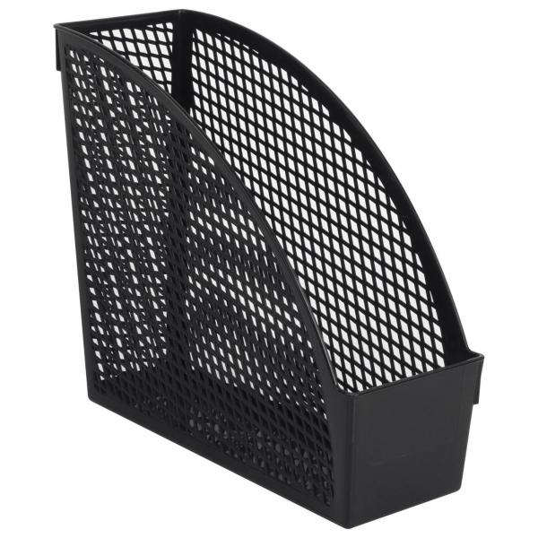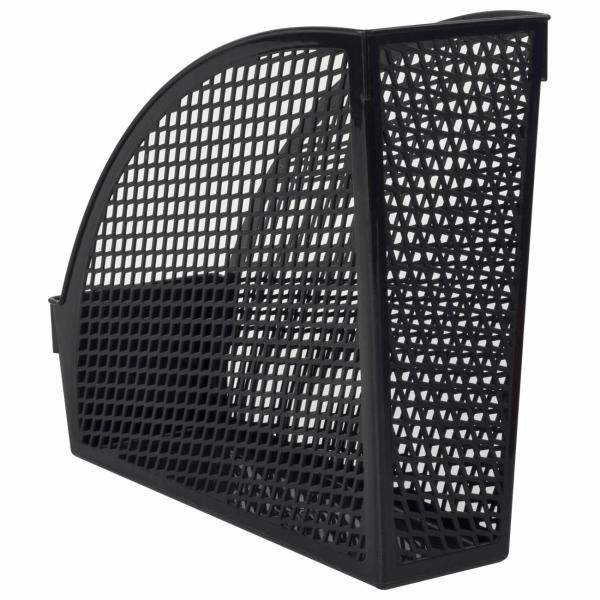 Выполнен в черном цвете из полипропилена с одним отделением. Предназначен для хранения бумаг формата А4. Представляет собой устойчивую неразборную конструкцию с прочной сетчатой поверхностью. Размеры: высота - 270 мм, ширина - 100 мм, глубина - 250 мм.