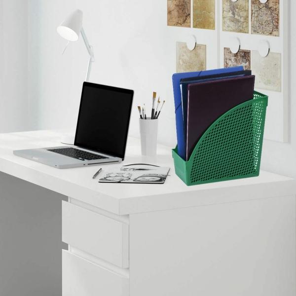Предназначен для хранения бумажной продукции формата А4 на столе или в шкафу. Изготовлен из полипропилена черного цвета. Прочная сетчатая поверхность. Одно вместительное отделение шириной 100 мм. Устойчивая конструкция. Размер - 270х250 мм.