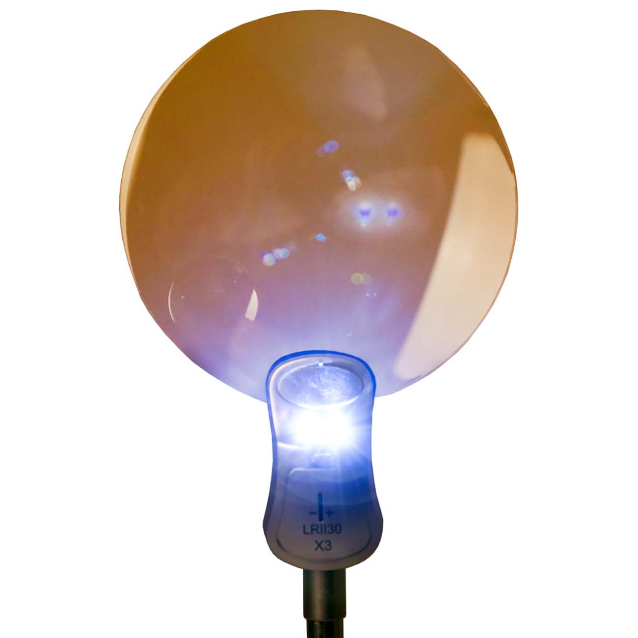 Для работы при недостаточном освещении пригодятся встроенные LED-лампы. Источником питания для них служат три батарейки LR1130, которые входят в комплект.