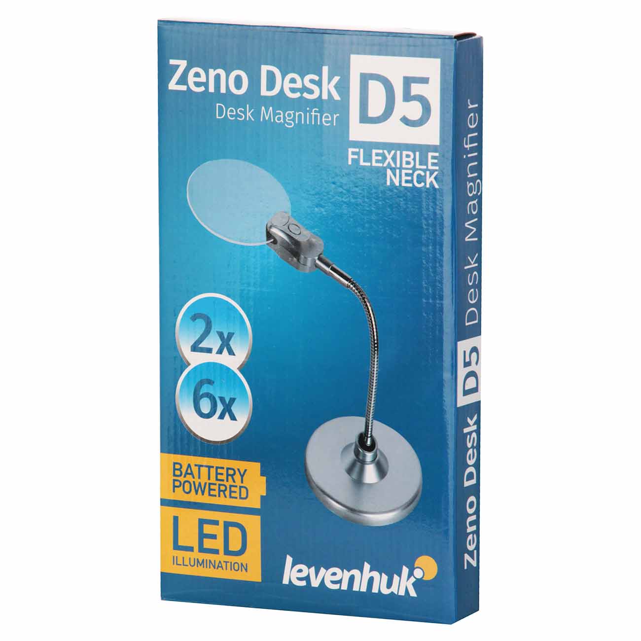 Эта модель представляет собой бифокальную линзу на гибком штативе, установленную на устойчивое круглое основание. Вы можете использовать 2- или 6-кратное увеличение и менять угол наклона, выбирая оптимальное положение.