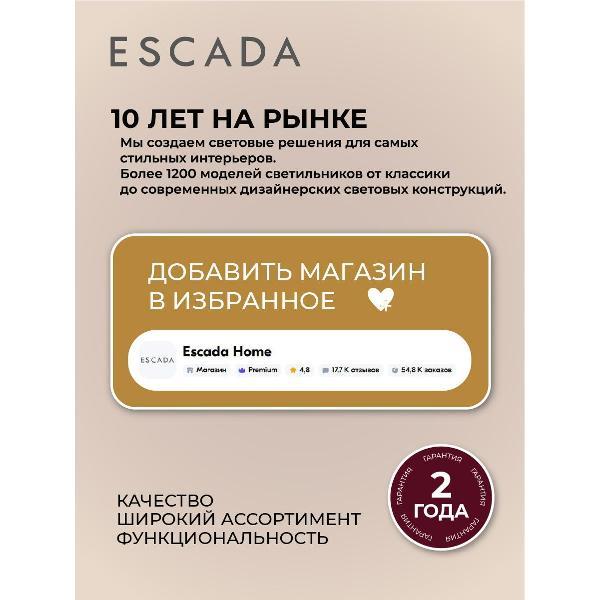 Вы можете купить Люстра Escada Бра 40 Вт в магазинах М.Видео по доступной цене. Люстра Escada Бра 40 Вт: подробное описание, фото и отзывы реальных покупателей, характеристики, возможность скачать инструкции и подобрать аксессуары.