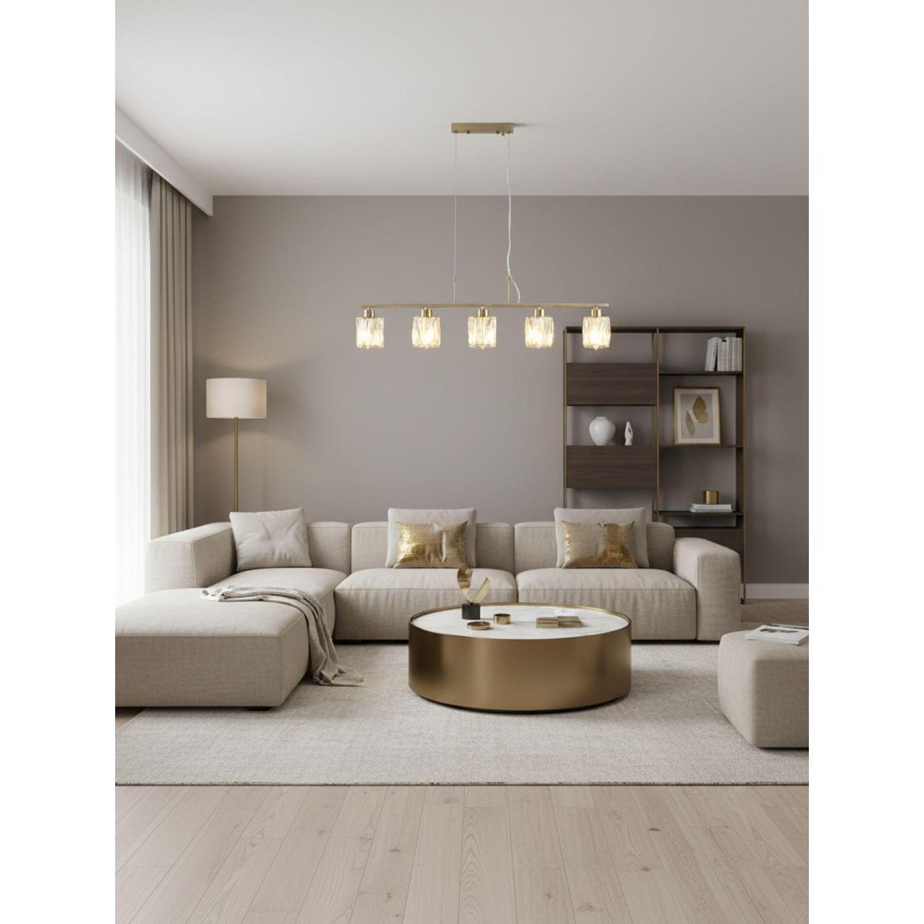 Подвесной светильник подходит для интерьеров разных стилей — от современного минимализма до классических и неоклассических направлений, а также гармонично смотрится в современных интерьерах с декоративными акцентами. Он легко вписывается как в пространство небольшой комнаты, так и в просторный зал, создавая функциональное и сбалансированное освещение.