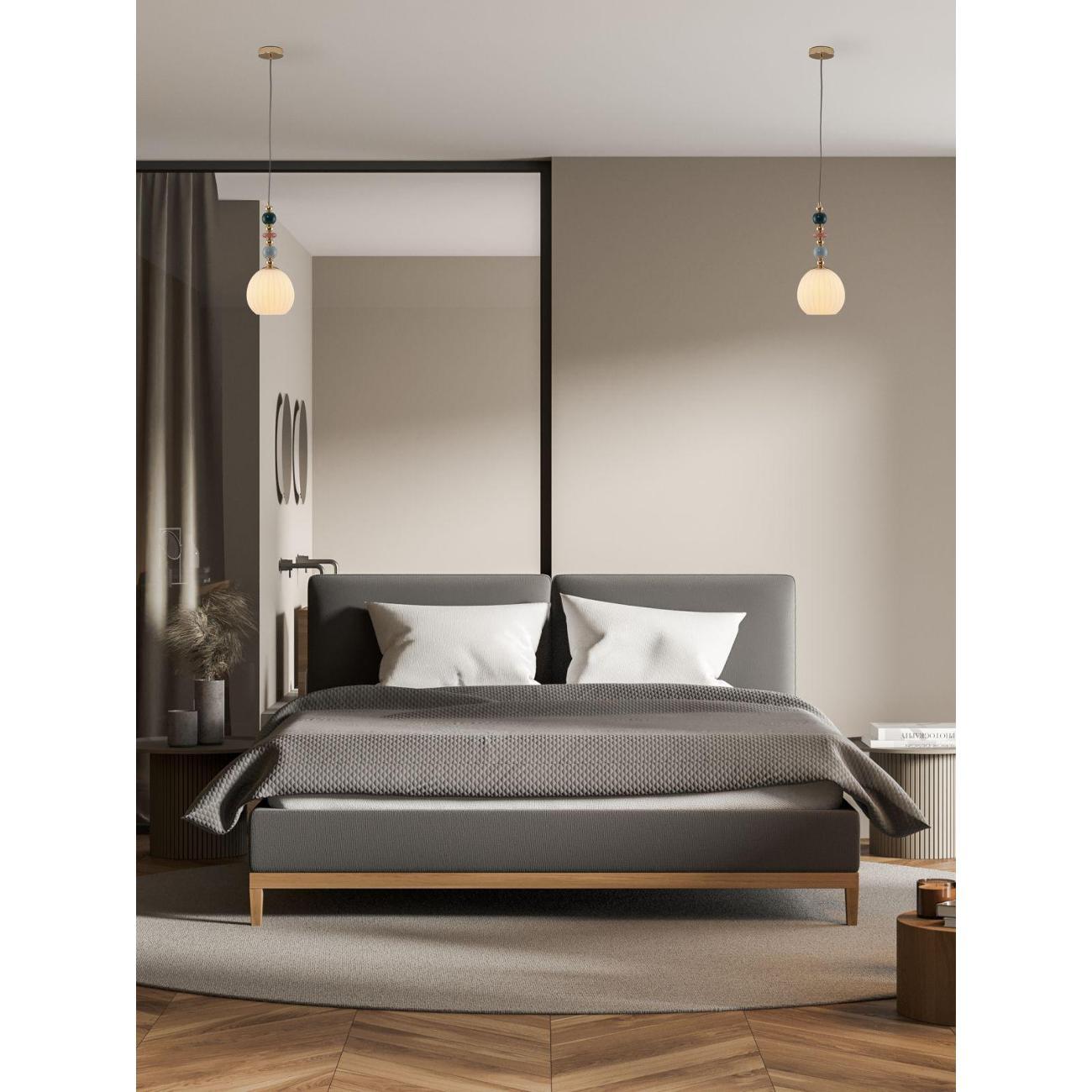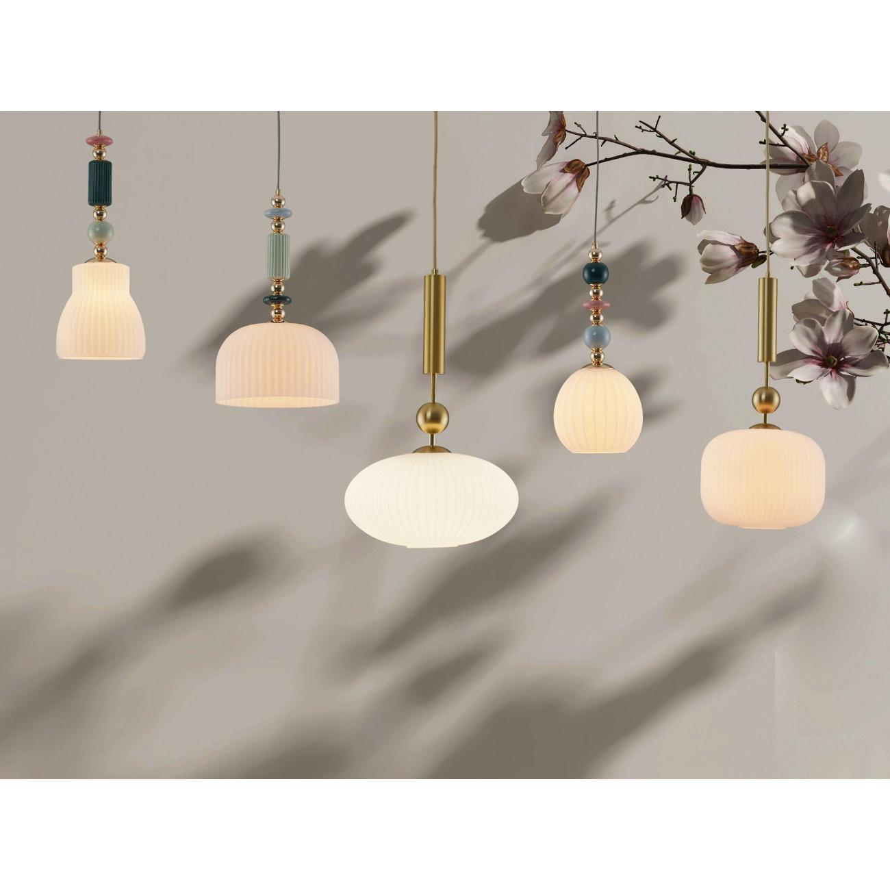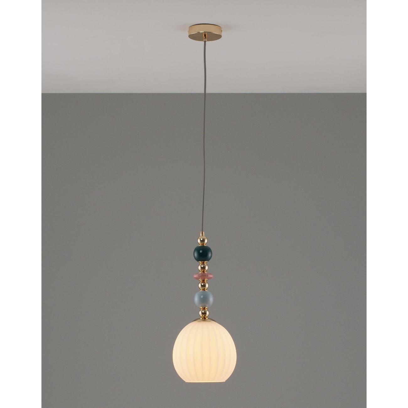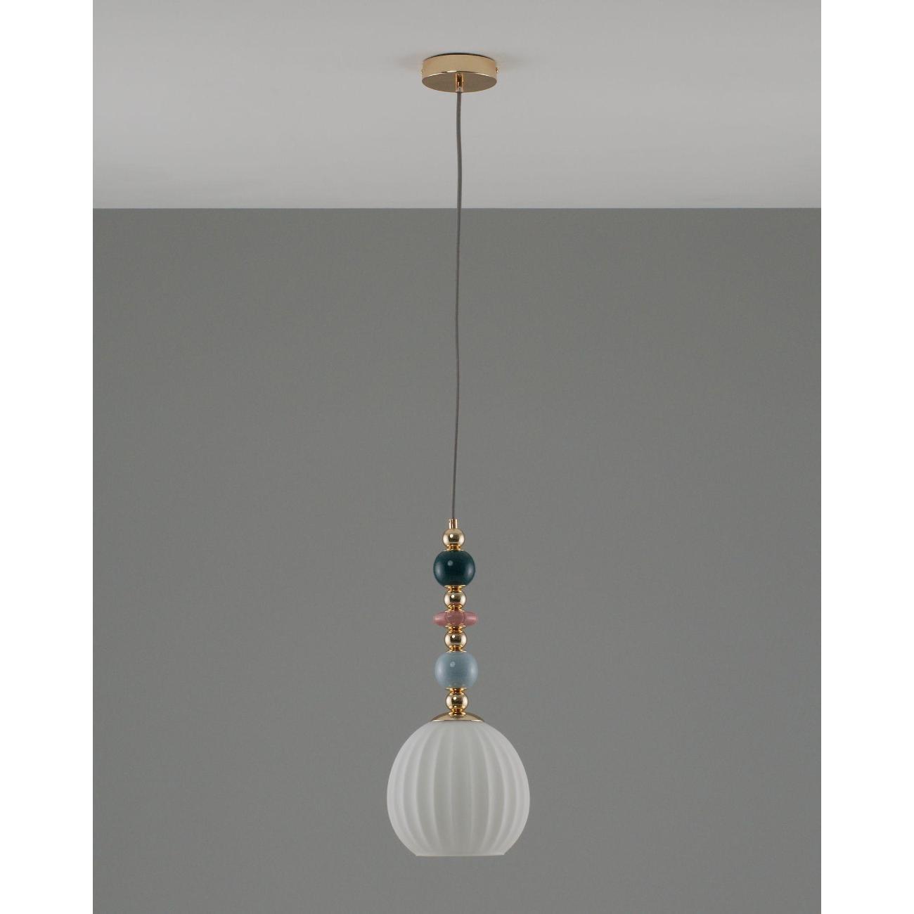 Подвесной светильник с плафоном из коллекции Charm. Абажур выполнен из плотного материала, который хорошо пропускает свет и мягко рассеивает его. Каркас изготовлен из металла, а изящные декоративные элементы у основания абажура дополняют светильник. В качестве источника света подойдут лампы с цоколем Е27. Подвесной светильник имеет простой и надёжный способ крепления на крюк. Благодаря регулируемой по высоте подвесной системе светильник можно адаптировать под разные задачи — разместить выше для общего освещения или опустить ниже, чтобы акцентировать зону стола, барной стойки или рабочего уголка. Подвесной светильник станет отличным решением для кухни , спальни, коридора или детской, добавляя помещению функциональность и современный стиль. Регулируемая высота делает его особенно удобным для обеденных зон, рабочих поверхностей и центрального освещения.