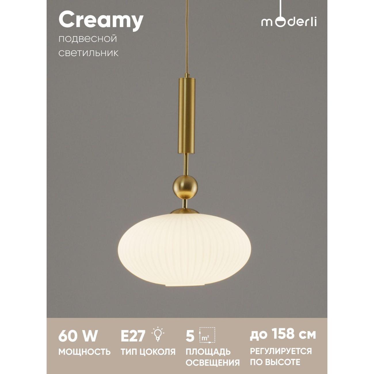 Современный и стильный подвесной светильник Creamy. Стеклянный матовый плафон мягко рассеивает свет для комфортного освещения. В качестве источника света подойдут лампы с цоколем E27. Каркас выполнен из металла в простом и лаконичном стиле, гармонично сочетается со сферичным плафоном. При монтаже высоту светильника можно отрегулировать по высоте.
