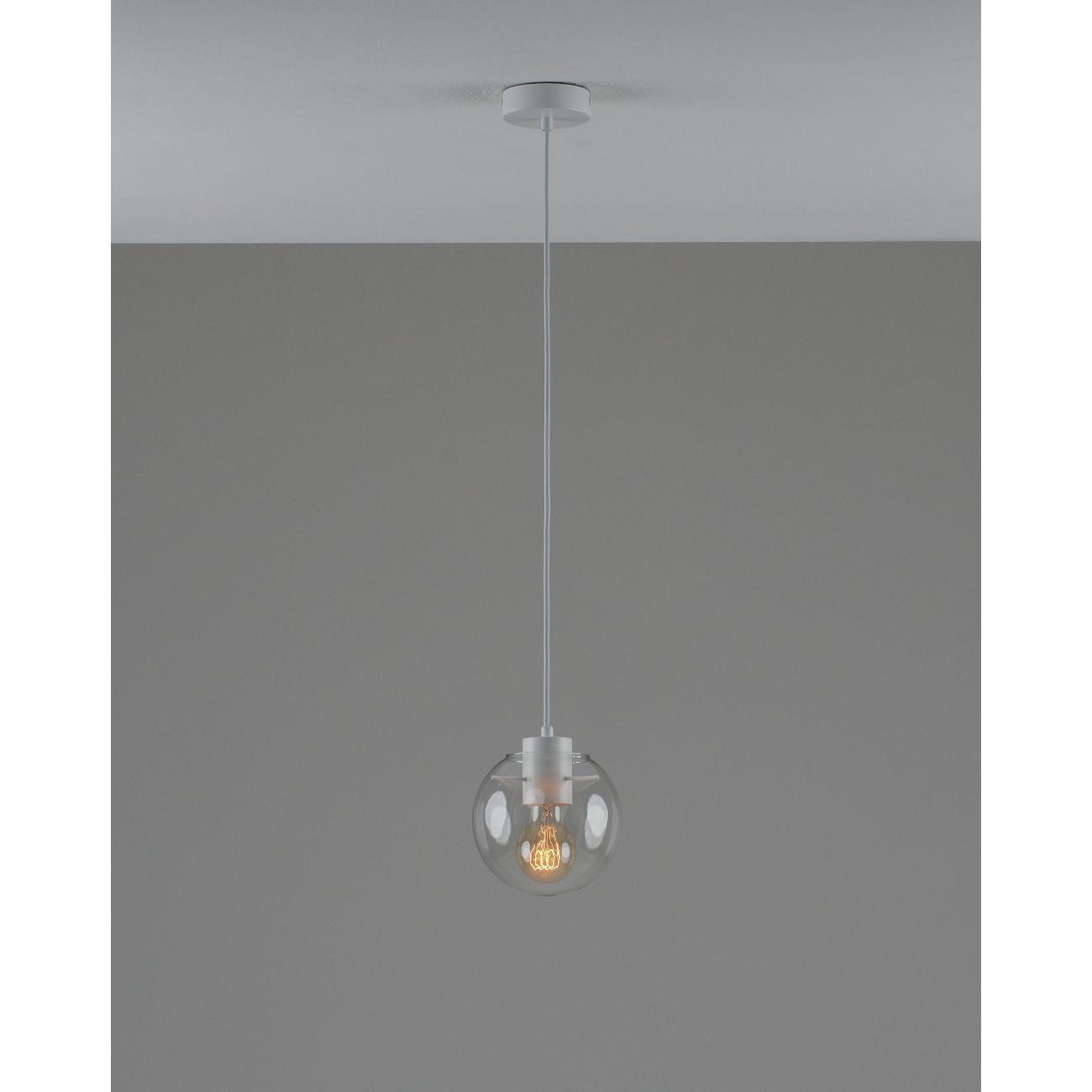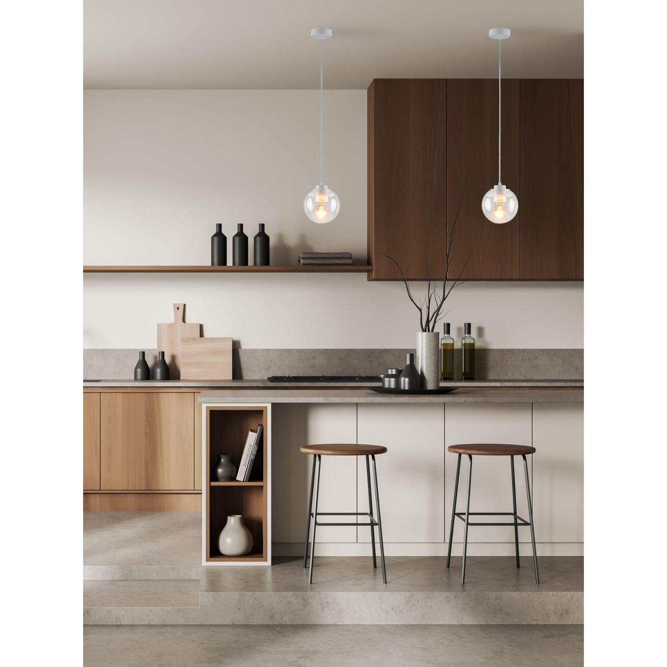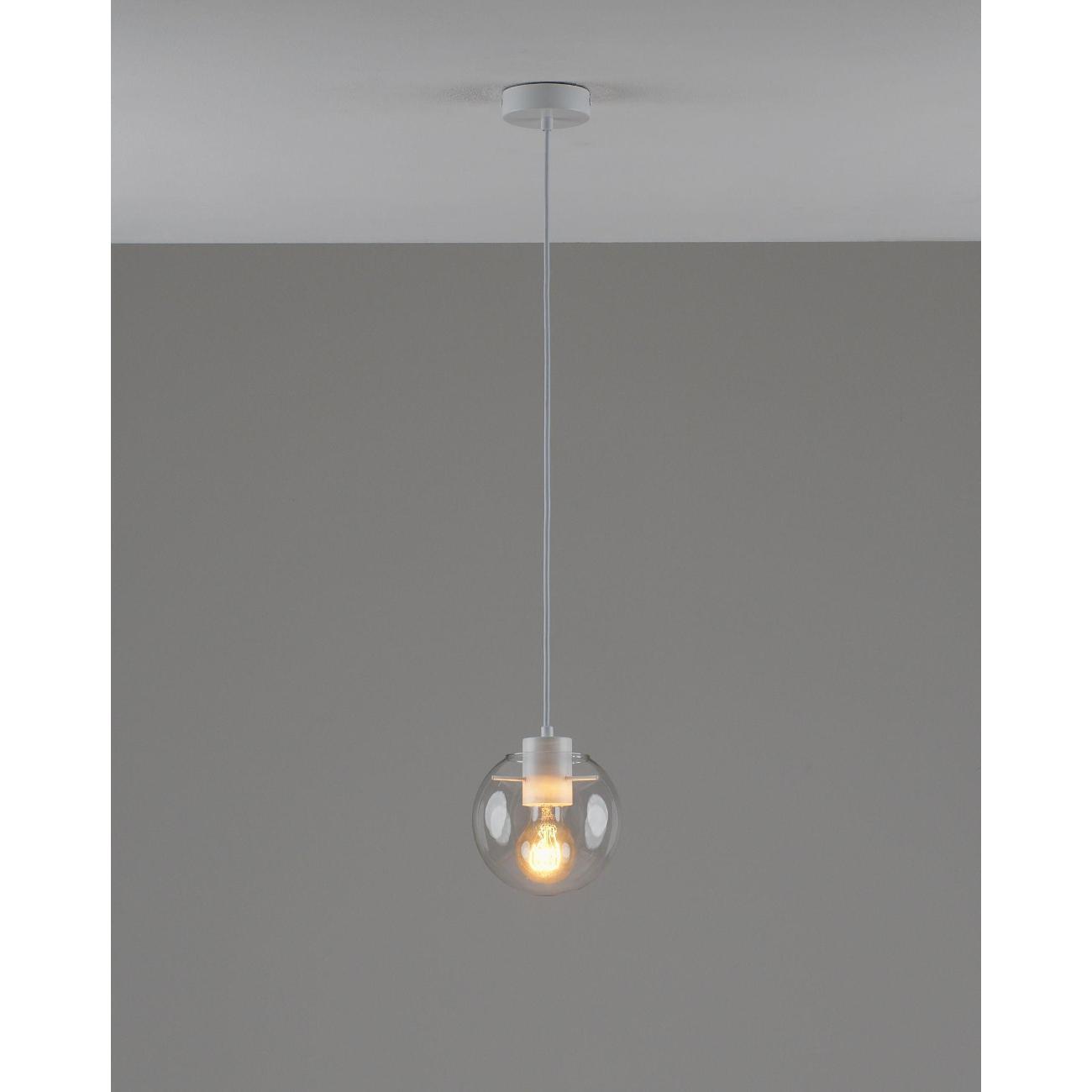 Подвесной светильник Moderli V11546-1P Aurora в современном стиле с плафоном из прозрачного стекла и арматурой белого цвета. Диаметр стеклянного плафона 15 см, в качестве источника света могут быть использованы лампы накаливания или LED с цоколем Е27.