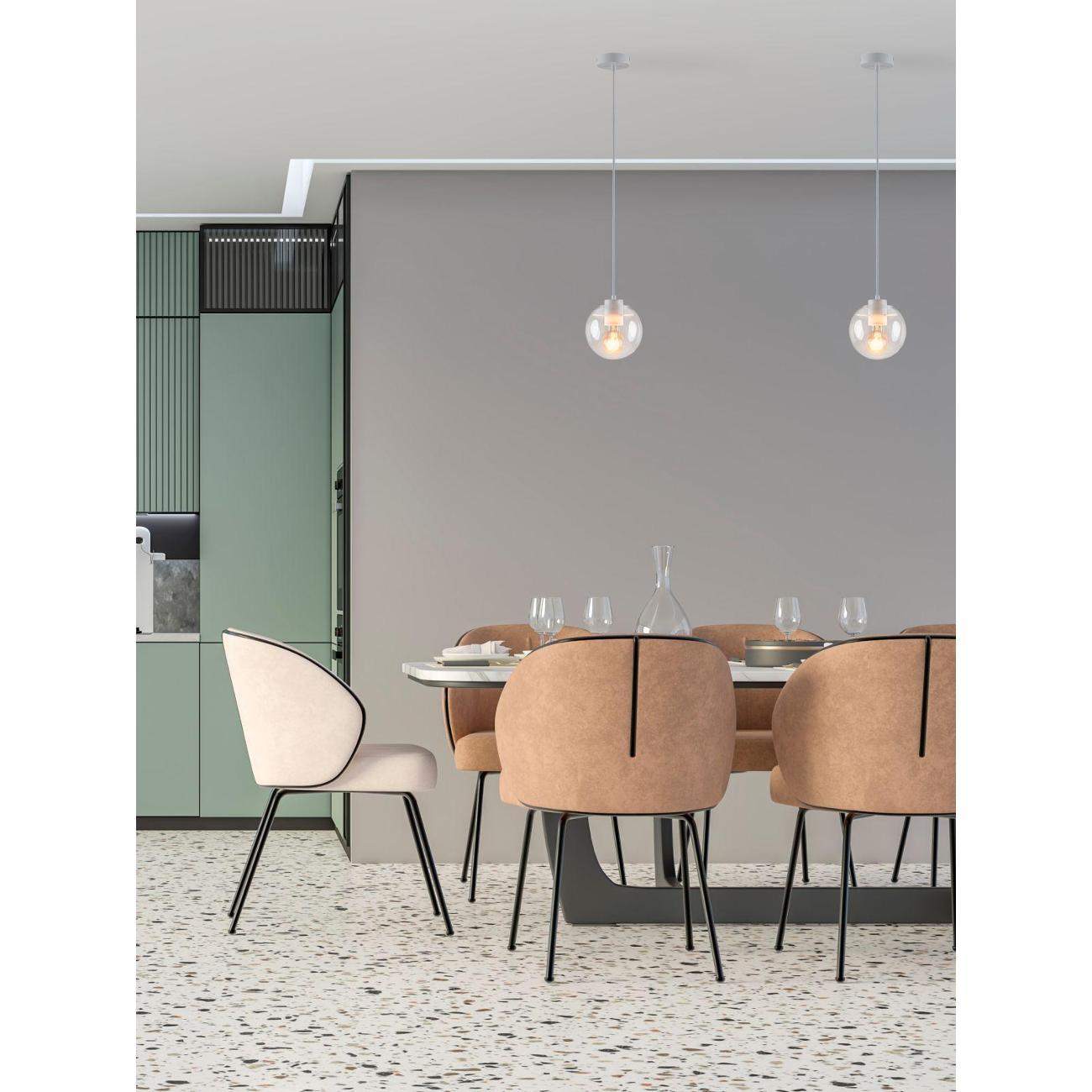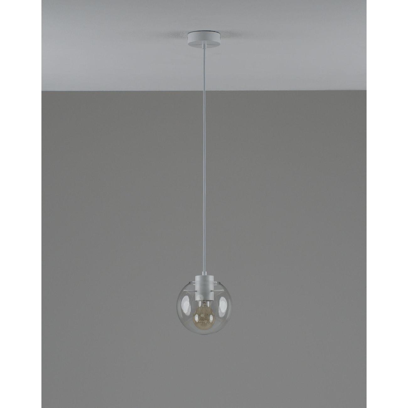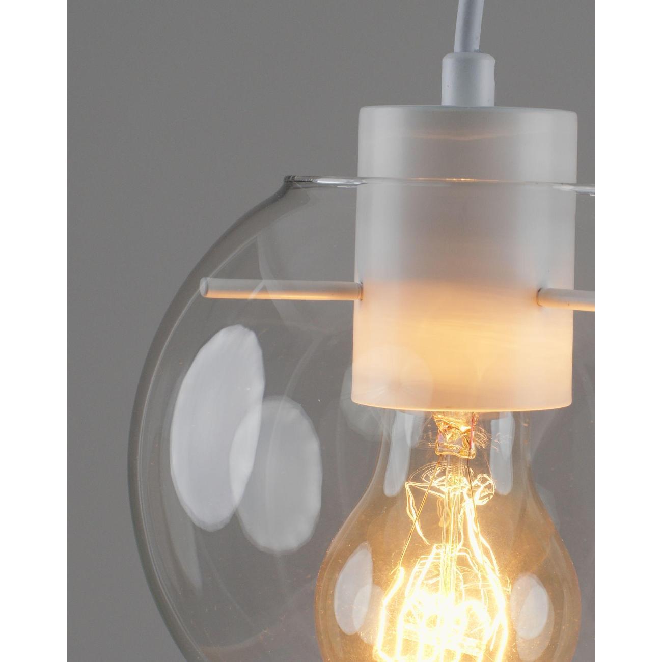 Подвесной светильник Moderli V11546-1P Aurora в современном стиле с плафоном из прозрачного стекла и арматурой белого цвета. Диаметр стеклянного плафона 15 см, в качестве источника света могут быть использованы лампы накаливания или LED с цоколем Е27.