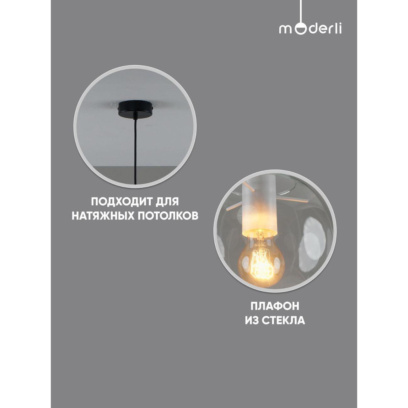 Подвесной светильник в стиле лофт Moderli Aurora — это идеальное решение для создания стильного и современного интерьера. Его прозрачный стеклянный плафон в сочетании с черной арматурой придает изделию элегантный и утонченный вид. Этот светильник подвесной потолочный станет отличным выбором для тех, кто ценит минимализм и функциональность в оформлении пространства. Aurora подходит для использования с лампами накаливания или LED с цоколем Е27, что позволяет выбрать оптимальный источник света для вашего помещения. Он обеспечивает освещение площадью до 3 кв. м, что делает его идеальным для небольших комнат, таких как кухня, обеденная зона, зал, гостиная, спальня или коридор. Одним из ключевых преимуществ этого светильника является возможность регулировки по высоте при монтаже, что позволяет адаптировать его под любые потолки и создать нужный уровень освещения. Он легко впишется в интерьер в стиле лофт, добавив в него нотку современности и изысканности. Этот декоративный элемент не только выполняет функцию освещения, но и служит стильным акцентом в интерьере. Используйте несколько таких светильников для создания точечных световых акцентов, которые подчеркнут уникальность вашего декора. Светильник подвесной потолочный Aurora — это не просто источник света, а полноценный элемент декора, который преобразит вашу комнату. Он идеально подходит для тех, кто стремится к созданию уютной и стильной атмосферы в своем доме. Благодаря своему универсальному дизайну, этот светильник станет гармоничным дополнением любого интерьера, добавив в него свет и уют. Выбирая светильник Aurora, вы получаете не только качественное освещение, но и возможность подчеркнуть индивидуальность вашего пространства, создавая уникальные световые решения.