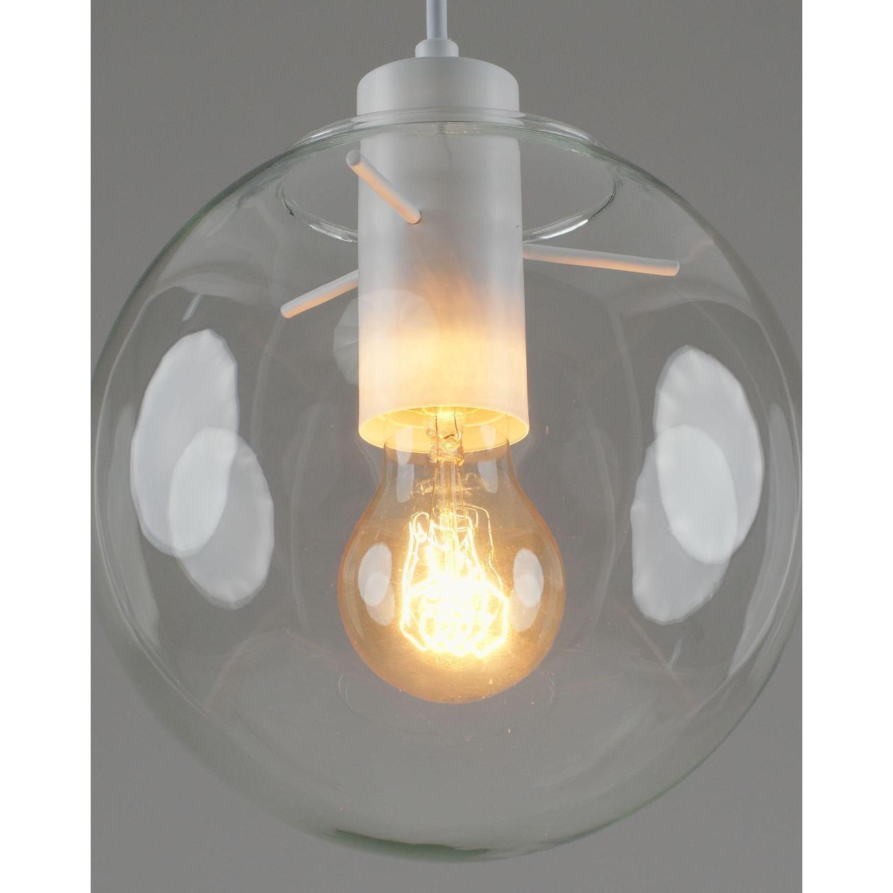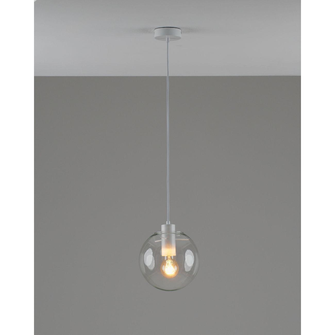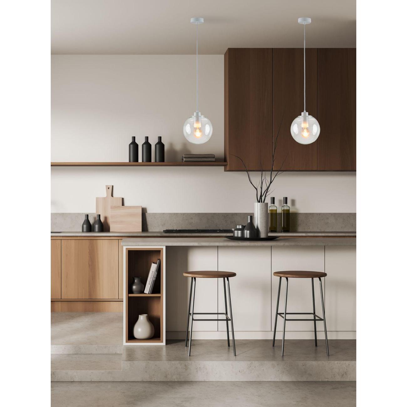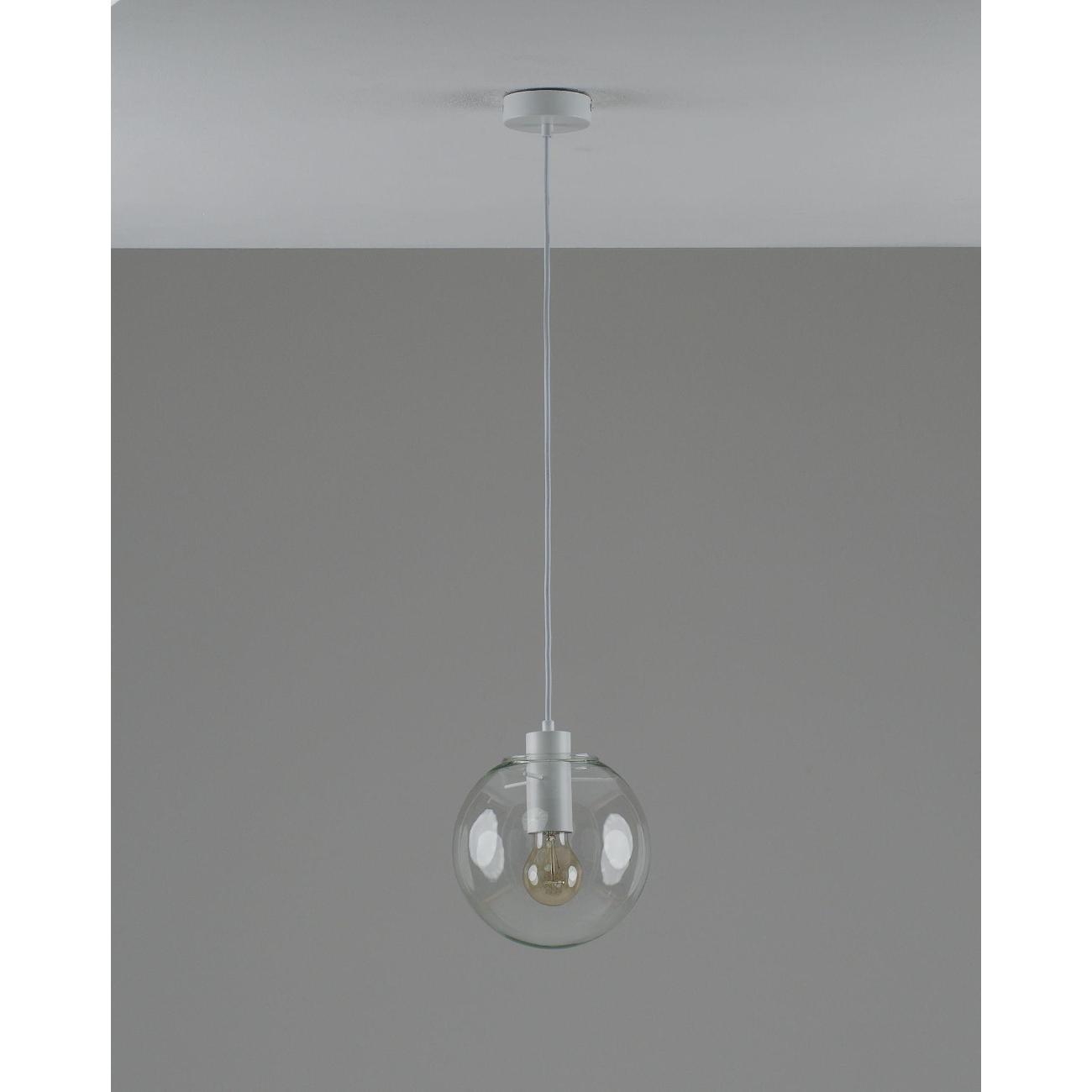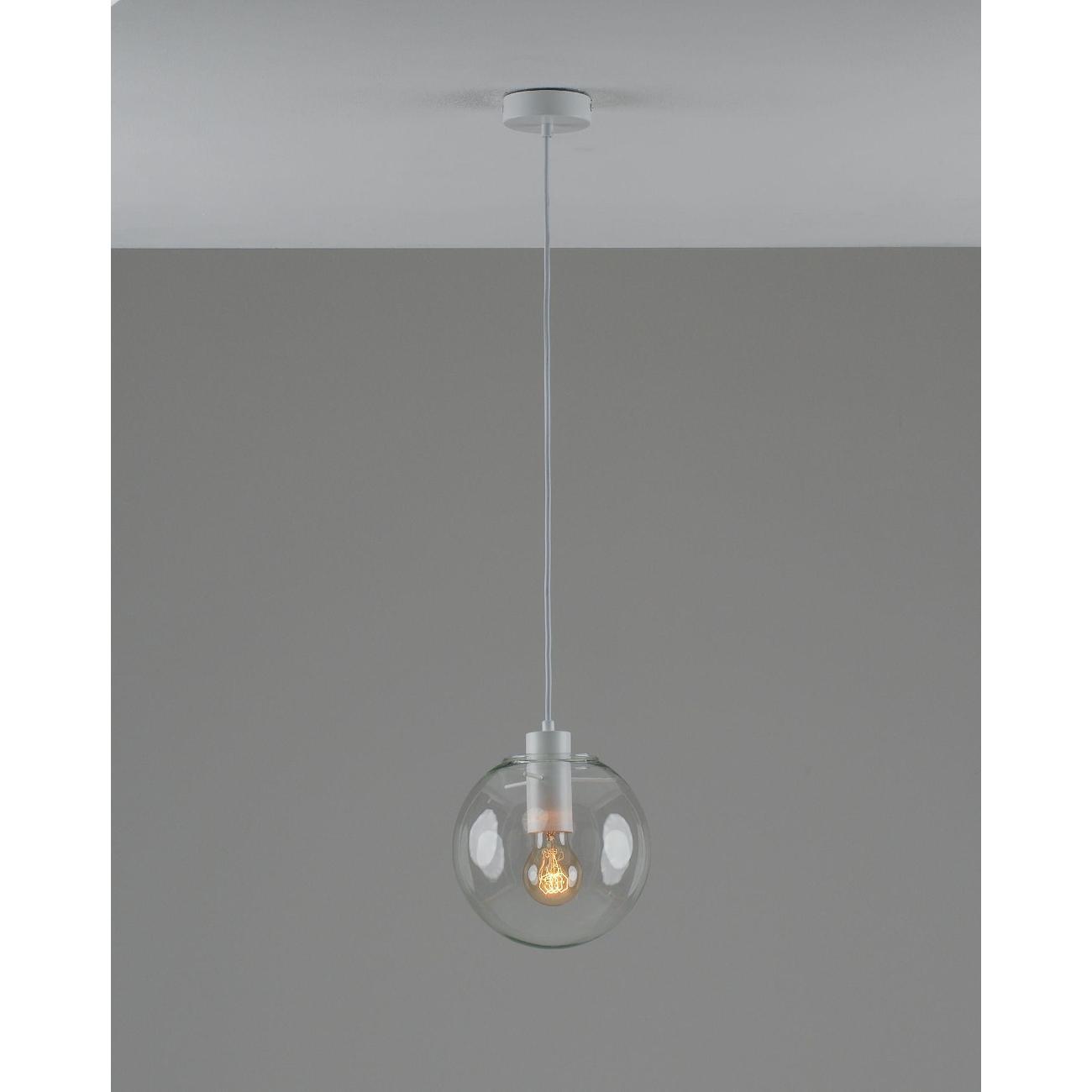 Подвесной светильник Moderli V11547-1P Aurora в современном стиле с плафоном из прозрачного стекла и арматурой белого цвета. Диаметр стеклянного плафона 20 см, в качестве источника света могут быть использованы лампы накаливания или LED с цоколем Е27.