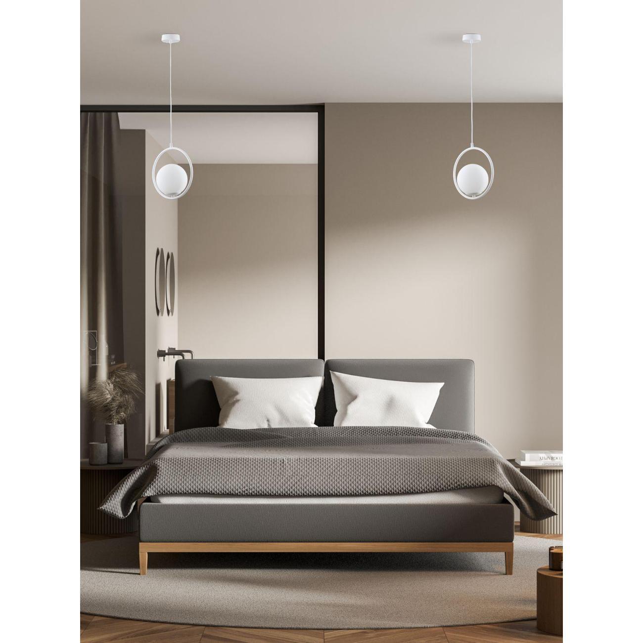 Современный и стильный подвесной светильник Barocco. Стеклянный матовый плафон мягко рассеивает свет для комфортного освещения. В качестве источника света подойдут лампы с цоколем E27. Каркас выполнен из металла в простом и лаконичном стиле, гармонично сочетается со сферичным плафоном. Конструкция надежно крепится к потолку на планку. Общая высота светильника 120 см, идеальный вариант для комнат с высокими потолками. При монтаже его можно отрегулировать по высоте.