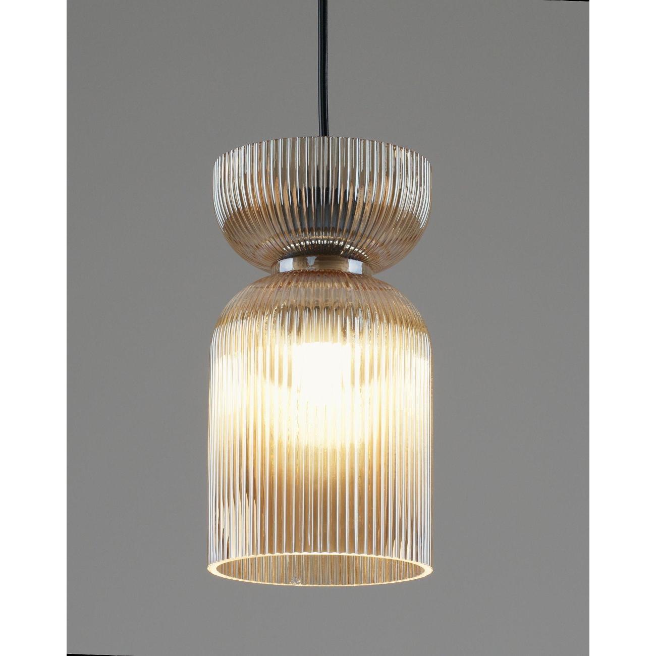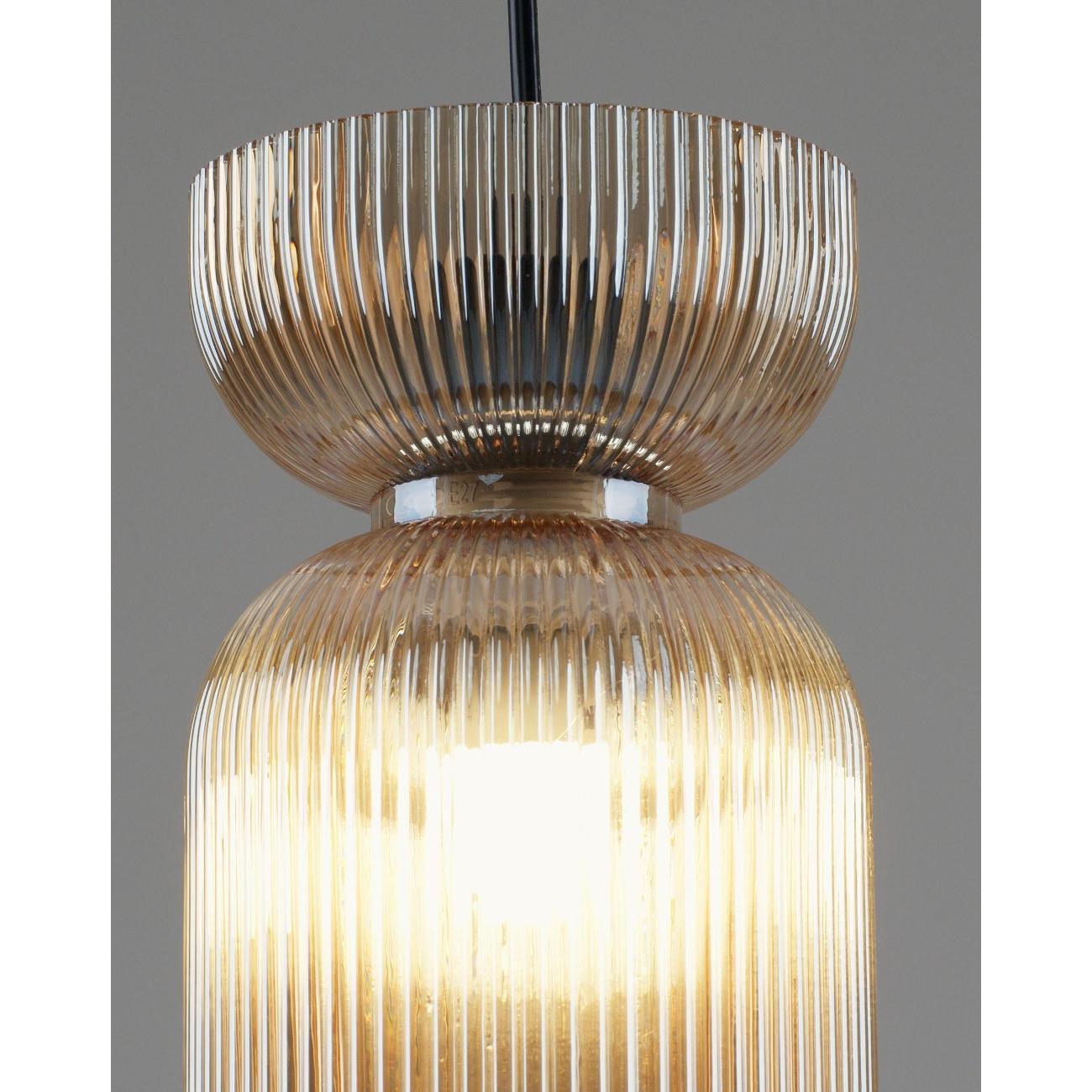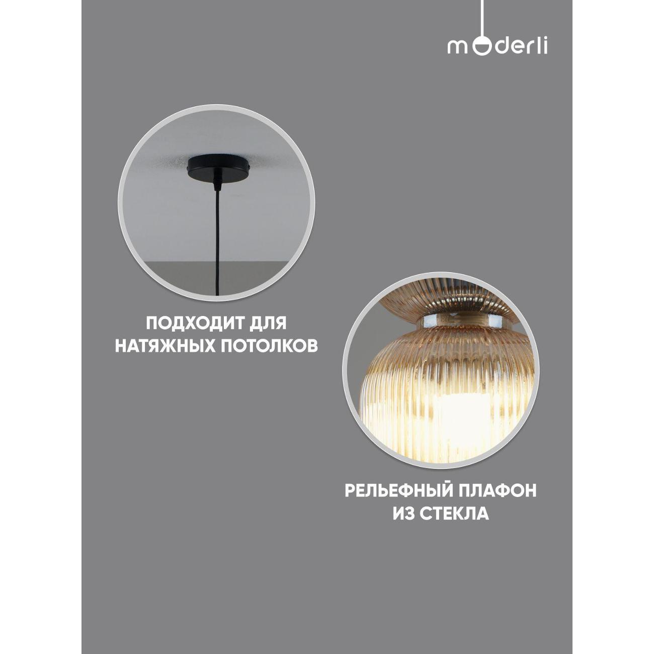 Подвесной светильник с плафоном из стекла Moderli Roswell — это стильный акцент, который добавит глубину и выразительность вашему интерьеру. Этот подвесной светильник выполнен из прозрачного цветного стекла, что придаёт ему элегантность и насыщенность цвета. Глянцевая текстура и рельефная поверхность плафона создают уникальную игру теней, преломляя свет и делая его визуальным центром комнаты. Светильник Roswell отличается графичной формой и универсальностью. Его плафон в виде вытянутого цилиндра со сдержанным, но эффектным силуэтом идеально вписывается как в современные жилые интерьеры, так и в пространства HoReCa. Светильник направляет свет вниз, обеспечивая акцентное освещение над столом, барной стойкой или в зоне отдыха, что делает его идеальным для создания уютной атмосферы. Функциональность и гибкость монтажа — ещё одно преимущество этого светильника. Он подходит для натяжных потолков и регулируется по высоте, что позволяет адаптировать его под различные задачи и планировку помещения. Это делает Roswell отличным выбором для тех, кто ценит детали, насыщенные оттенки и визуальный комфорт. Этот декоративный подвесной светильник станет не только источником света, но и стильным элементом декора, который подчеркнёт индивидуальность вашего интерьера. Он идеально подходит для создания освещения в стиле лофт, добавляя современный штрих в любую комнату. Благодаря своей универсальности, светильник может быть использован в различных зонах, обеспечивая качественное освещение и создавая уютную атмосферу. Выбирая Roswell, вы получаете не просто лампу, а декоративный элемент, который станет акцентом вашего интерьера.