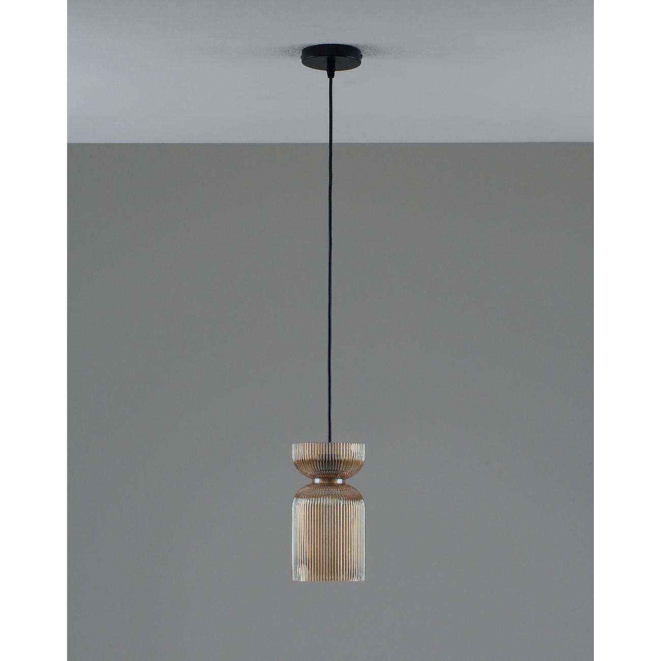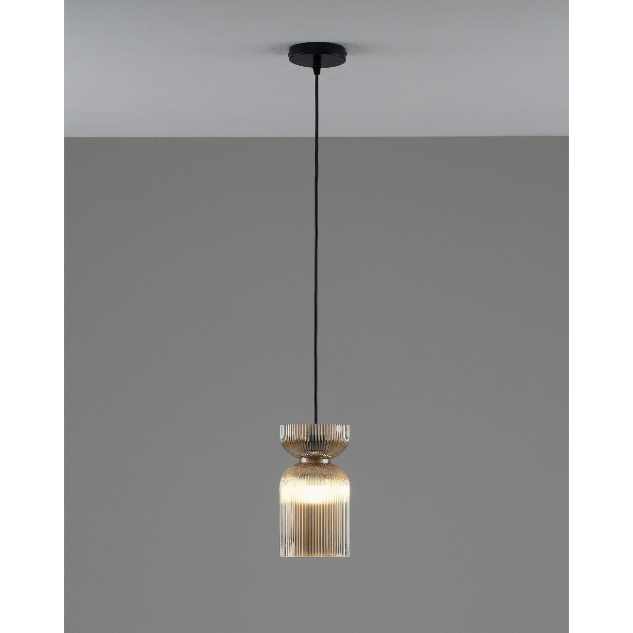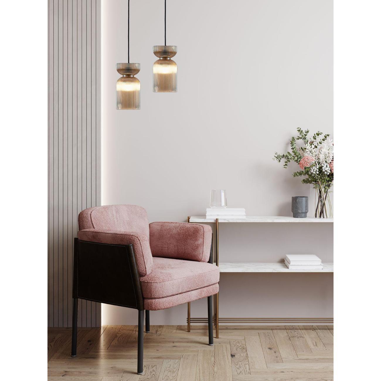 Подвесной светильник с плафоном из стекла Moderli Roswell — это стильный акцент, который добавит глубину и выразительность вашему интерьеру. Этот подвесной светильник выполнен из прозрачного цветного стекла, что придаёт ему элегантность и насыщенность цвета. Глянцевая текстура и рельефная поверхность плафона создают уникальную игру теней, преломляя свет и делая его визуальным центром комнаты. Светильник Roswell отличается графичной формой и универсальностью. Его плафон в виде вытянутого цилиндра со сдержанным, но эффектным силуэтом идеально вписывается как в современные жилые интерьеры, так и в пространства HoReCa. Светильник направляет свет вниз, обеспечивая акцентное освещение над столом, барной стойкой или в зоне отдыха, что делает его идеальным для создания уютной атмосферы. Функциональность и гибкость монтажа — ещё одно преимущество этого светильника. Он подходит для натяжных потолков и регулируется по высоте, что позволяет адаптировать его под различные задачи и планировку помещения. Это делает Roswell отличным выбором для тех, кто ценит детали, насыщенные оттенки и визуальный комфорт. Этот декоративный подвесной светильник станет не только источником света, но и стильным элементом декора, который подчеркнёт индивидуальность вашего интерьера. Он идеально подходит для создания освещения в стиле лофт, добавляя современный штрих в любую комнату. Благодаря своей универсальности, светильник может быть использован в различных зонах, обеспечивая качественное освещение и создавая уютную атмосферу. Выбирая Roswell, вы получаете не просто лампу, а декоративный элемент, который станет акцентом вашего интерьера.