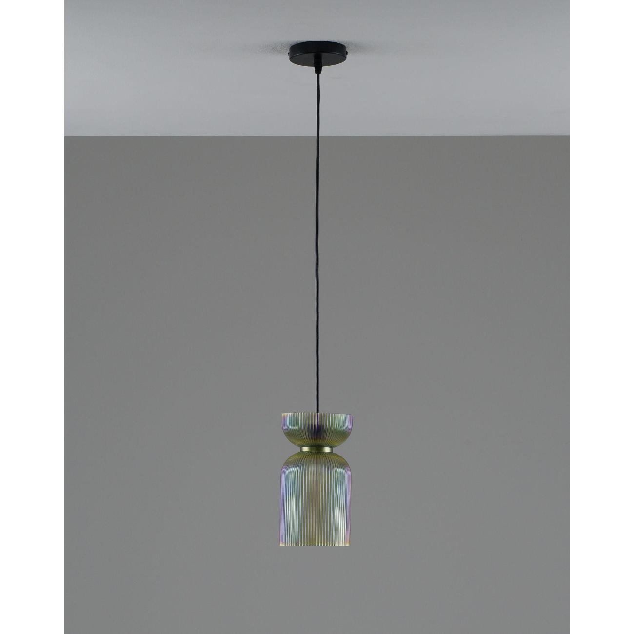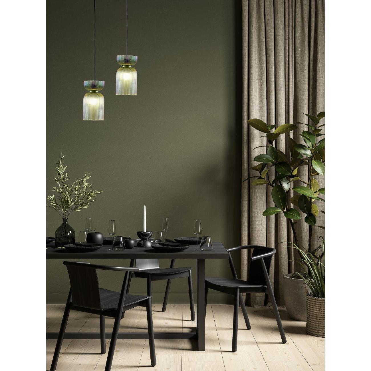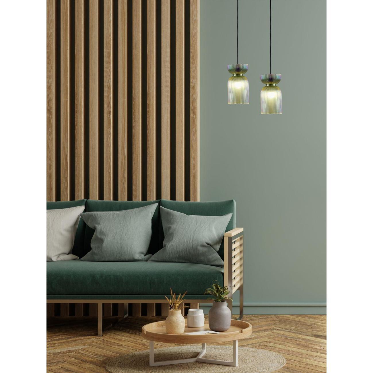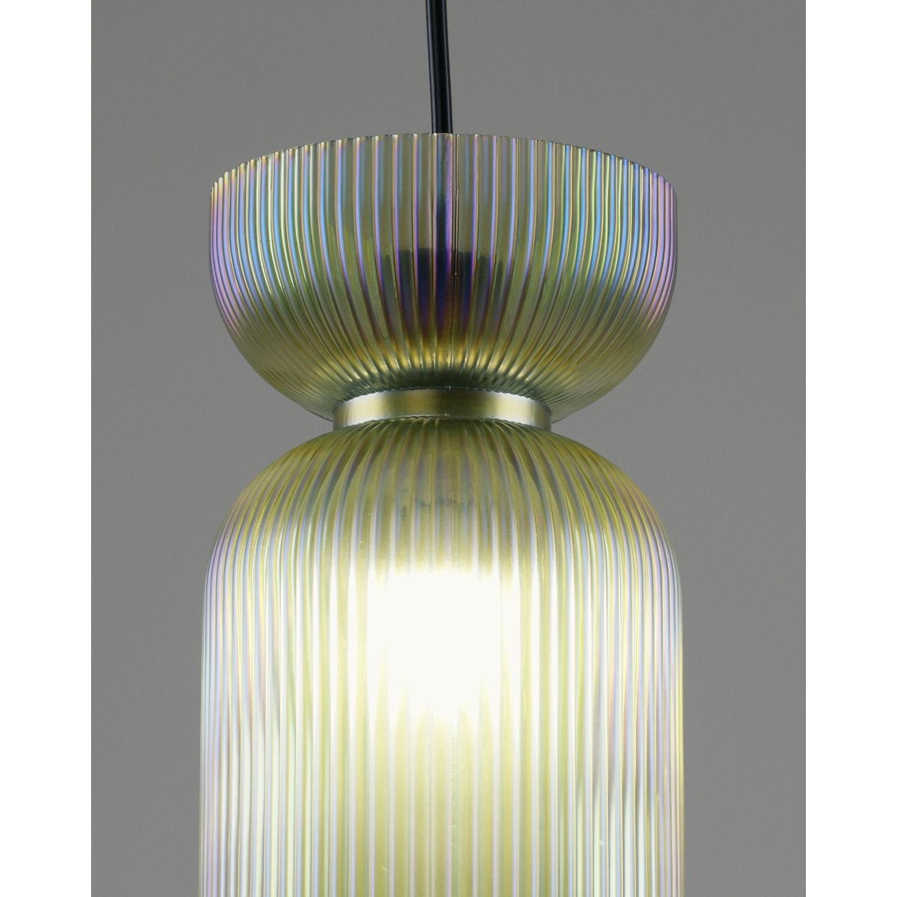 Подвесной светильник с плафоном из стекла Moderli Roswell — это стильный акцент, который добавит глубину и выразительность вашему интерьеру. Этот подвесной светильник выполнен из прозрачного цветного стекла, что придаёт ему элегантность и насыщенность цвета. Глянцевая текстура и рельефная поверхность плафона создают уникальную игру теней, преломляя свет и делая его визуальным центром комнаты. Светильник Roswell отличается графичной формой и универсальностью. Его плафон в виде вытянутого цилиндра со сдержанным, но эффектным силуэтом идеально вписывается как в современные жилые интерьеры, так и в пространства HoReCa. Светильник направляет свет вниз, обеспечивая акцентное освещение над столом, барной стойкой или в зоне отдыха, что делает его идеальным для создания уютной атмосферы. Функциональность и гибкость монтажа — ещё одно преимущество этого светильника. Он подходит для натяжных потолков и регулируется по высоте, что позволяет адаптировать его под различные задачи и планировку помещения. Это делает Roswell отличным выбором для тех, кто ценит детали, насыщенные оттенки и визуальный комфорт. Этот декоративный подвесной светильник станет не только источником света, но и стильным элементом декора, который подчеркнёт индивидуальность вашего интерьера. Он идеально подходит для создания освещения в стиле лофт, добавляя современный штрих в любую комнату. Благодаря своей универсальности, светильник может быть использован в различных зонах, обеспечивая качественное освещение и создавая уютную атмосферу. Выбирая Roswell, вы получаете не просто лампу, а декоративный элемент, который станет акцентом вашего интерьера.