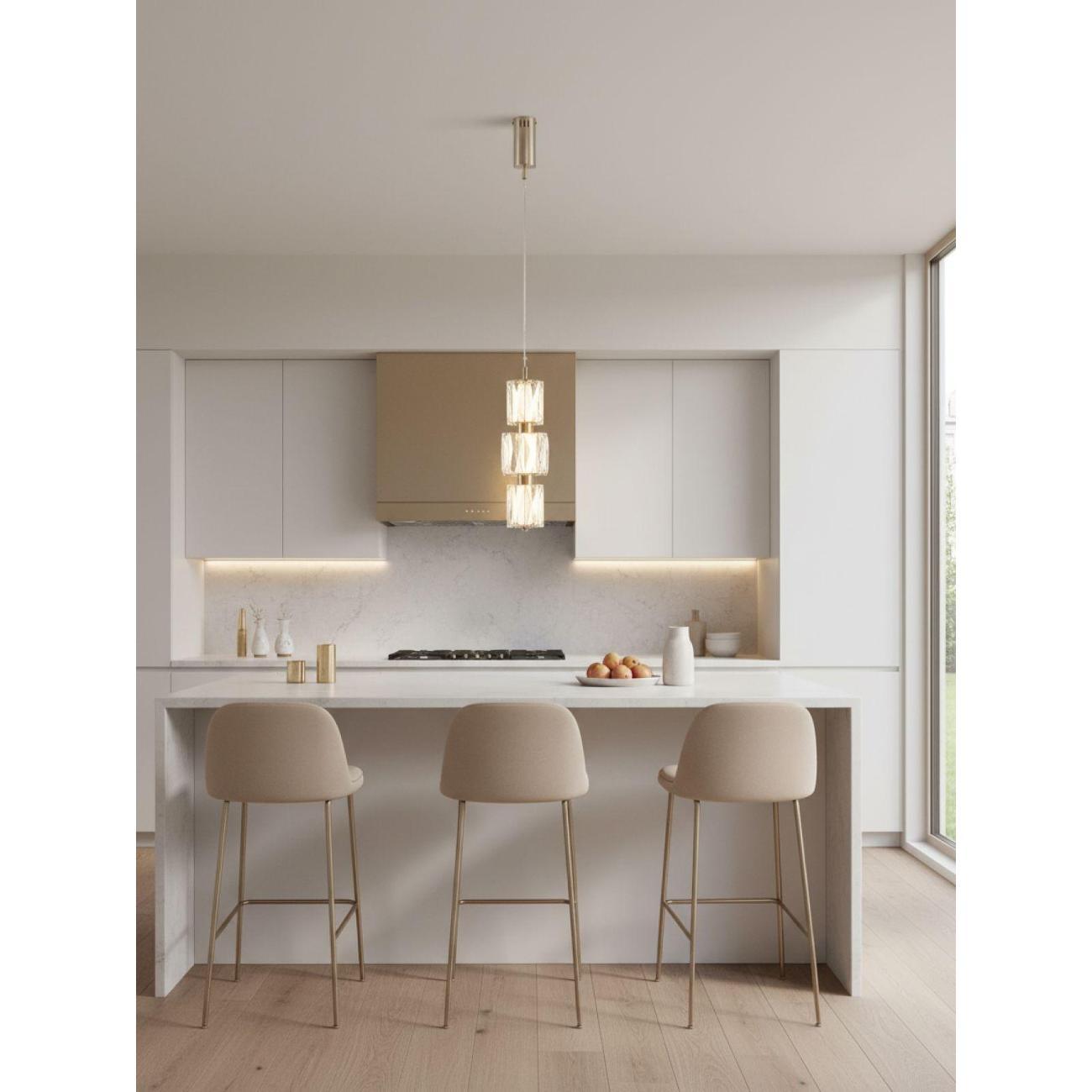 Подвесной светильник подходит для интерьеров разных стилей — от современного минимализма до классических и неоклассических направлений, а также гармонично смотрится в современных интерьерах с декоративными акцентами. Он легко вписывается как в пространство небольшой комнаты, так и в просторный зал, создавая функциональное и сбалансированное освещение.
