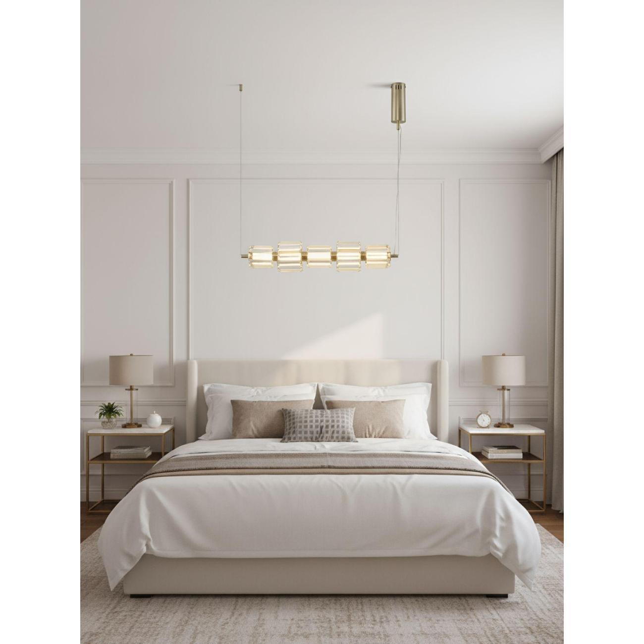 Подвесной светильник подходит для интерьеров разных стилей — от современного минимализма до классических и неоклассических направлений, а также гармонично смотрится в современных интерьерах с декоративными акцентами. Он легко вписывается как в пространство небольшой комнаты, так и в просторный зал, создавая функциональное и сбалансированное освещение.