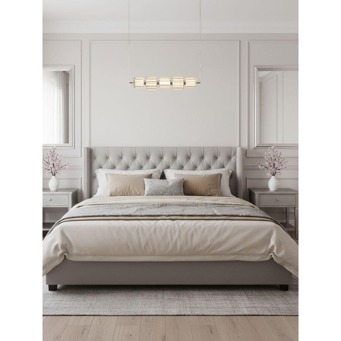 Подвесной светильник подходит для интерьеров разных стилей — от современного минимализма до классических и неоклассических направлений, а также гармонично смотрится в современных интерьерах с декоративными акцентами. Он легко вписывается как в пространство небольшой комнаты, так и в просторный зал, создавая функциональное и сбалансированное освещение.