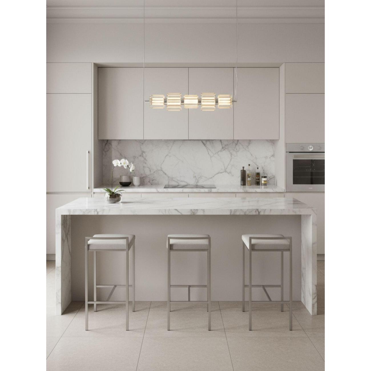 Конструкция светильника обеспечивает надёжность и длительный срок службы, сохраняя аккуратный внешний вид и форму на протяжении многих лет. Благодаря регулируемой по высоте подвесной системе светильник можно адаптировать под разные задачи — разместить выше для общего освещения или опустить ниже, чтобы акцентировать зону стола, барной стойки или рабочего уголка.