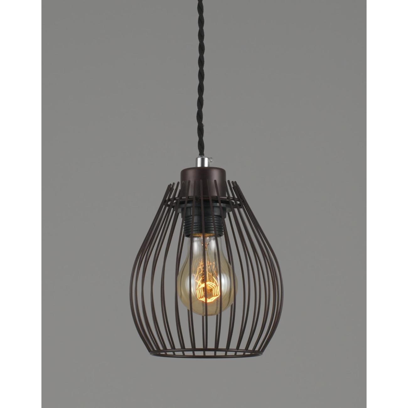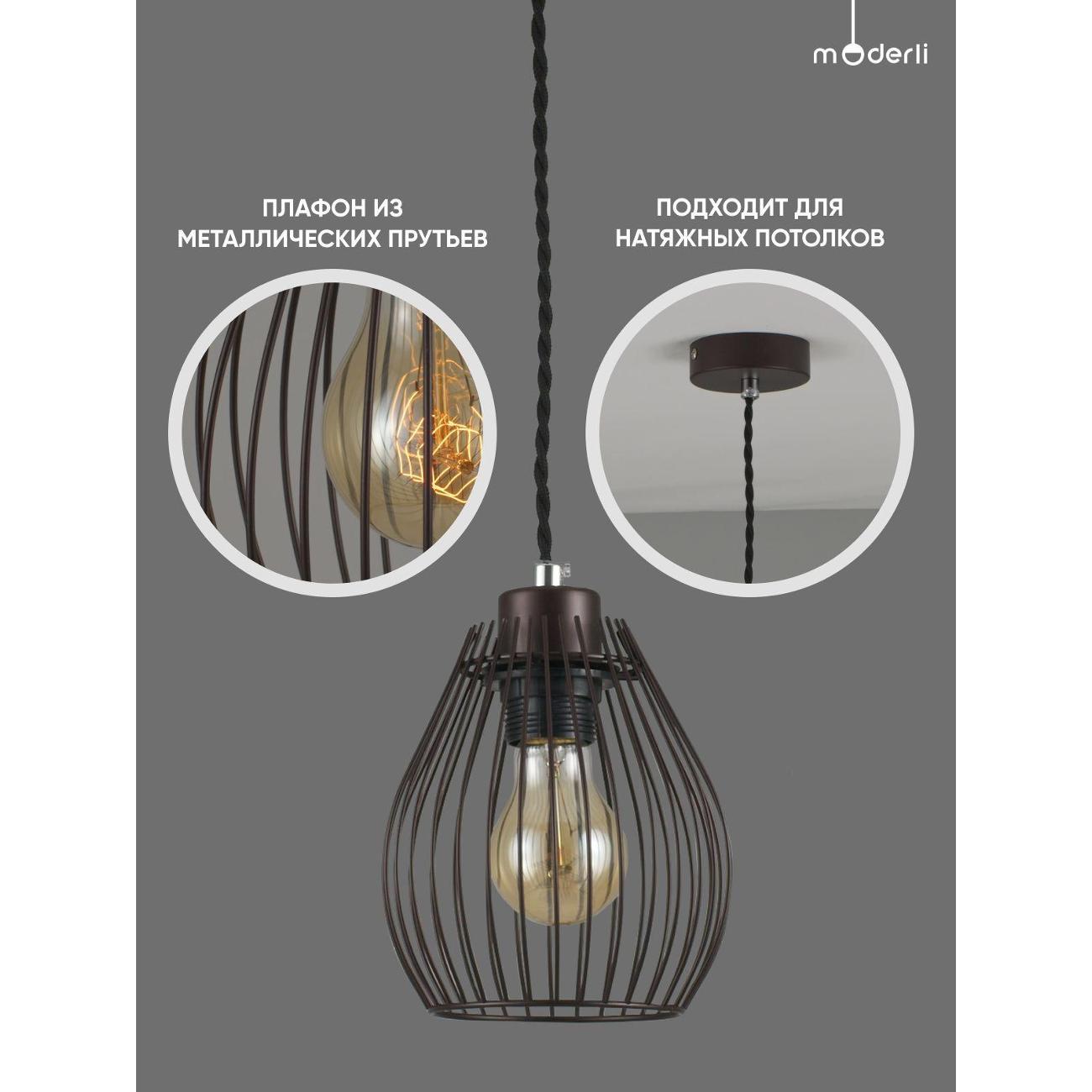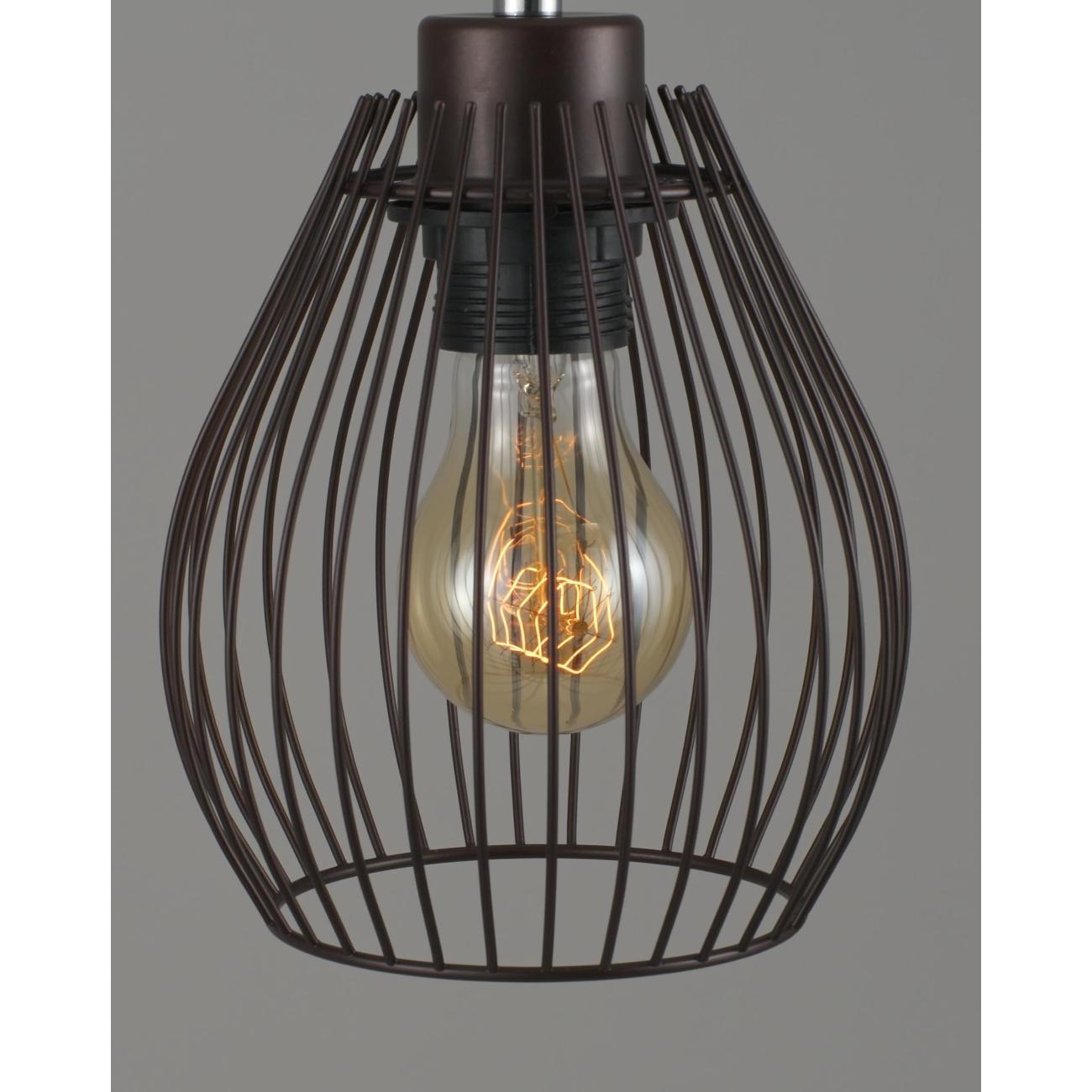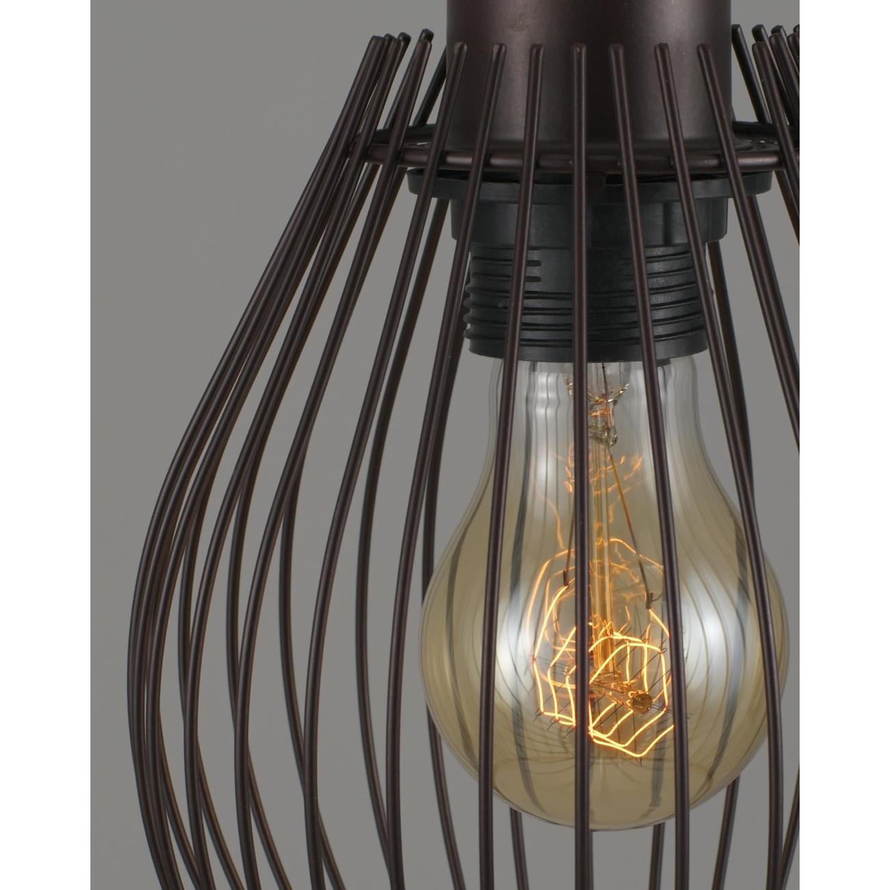 Современный подвесной светильник в лаконичном дизайне. Плафон из металлических прутьев сочетается с разными видами ламп и оригинально смотрится в любом интерьере. В качестве источника света используются лампы накаливания или LED с цоколем Е27. С площадью освещения в 3 м² данная модель подойдёт для небольшого пространства. Лаконичный и однотонный дизайн светильника дополнит интерьер в стиле лофт или минимализма. При монтаже светильника, высоту можно отрегулировать.