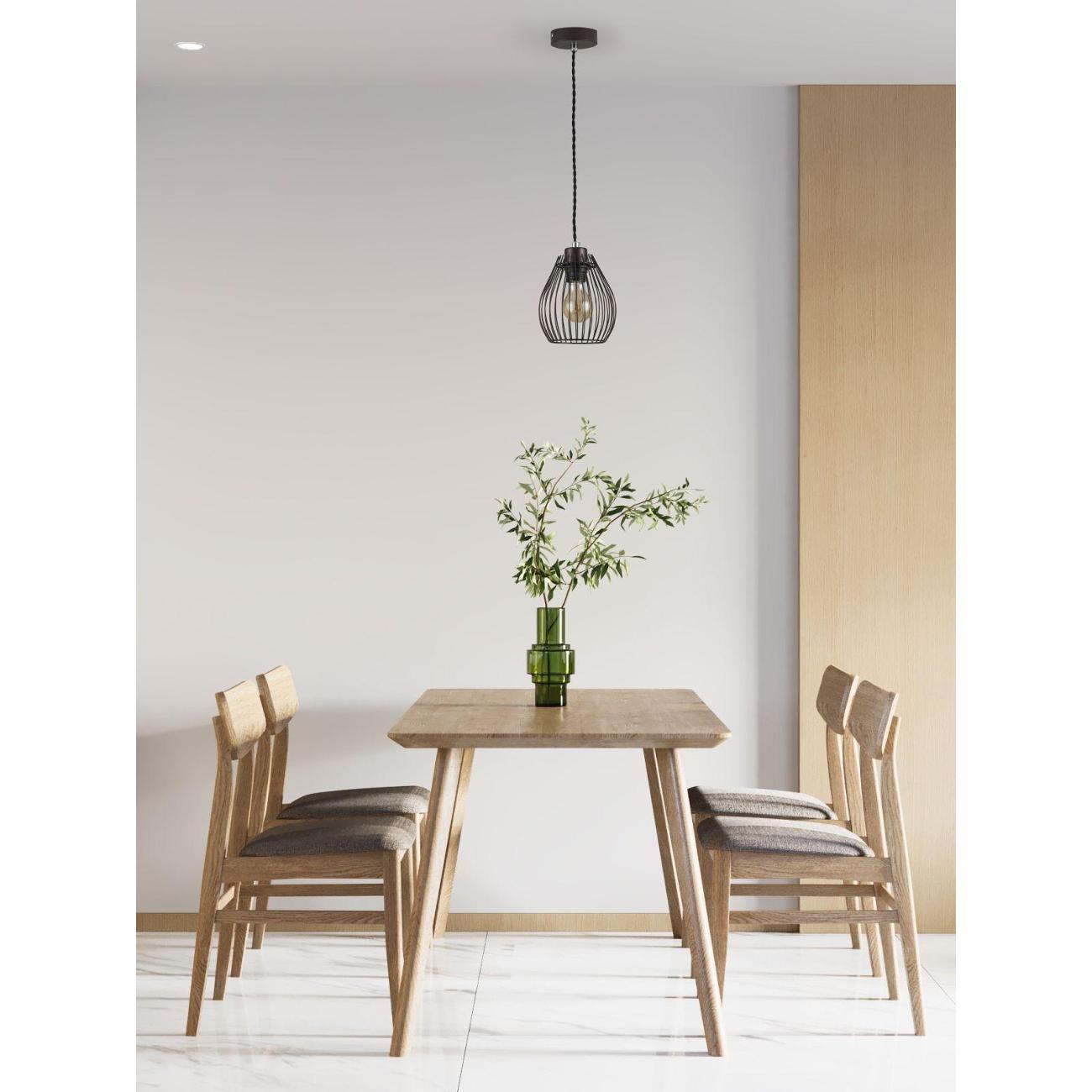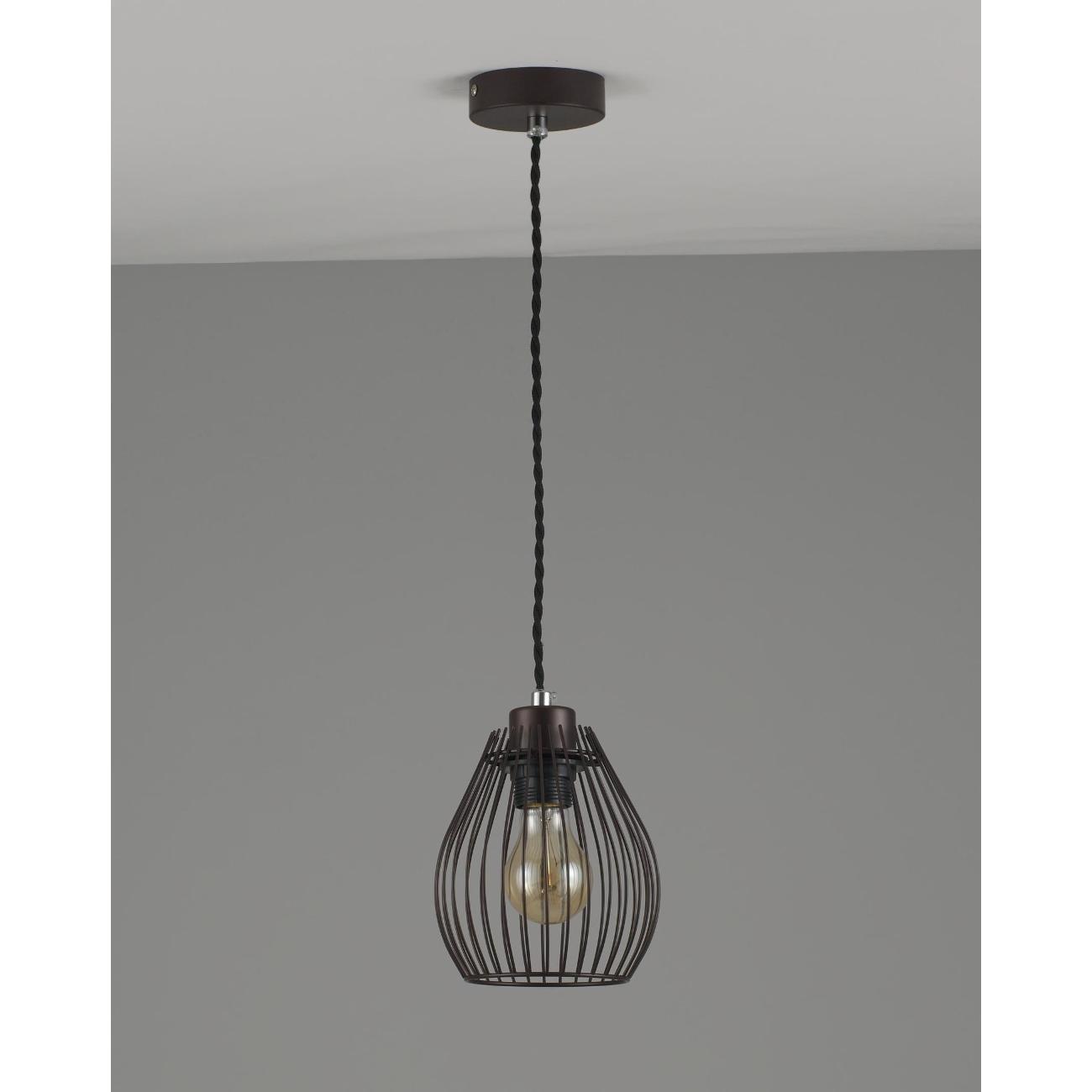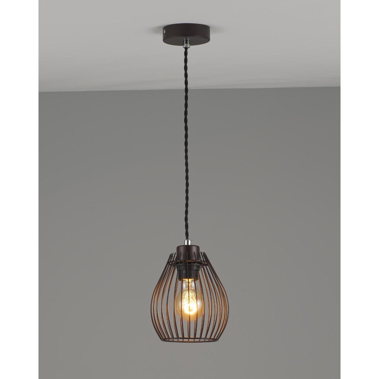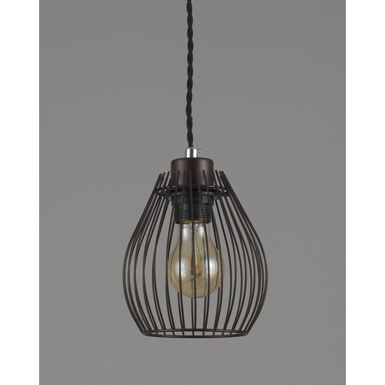 Современный подвесной светильник в лаконичном дизайне. Плафон из металлических прутьев сочетается с разными видами ламп и оригинально смотрится в любом интерьере. В качестве источника света используются лампы накаливания или LED с цоколем Е27. С площадью освещения в 3 м² данная модель подойдёт для небольшого пространства. Лаконичный и однотонный дизайн светильника дополнит интерьер в стиле лофт или минимализма. При монтаже светильника, высоту можно отрегулировать.