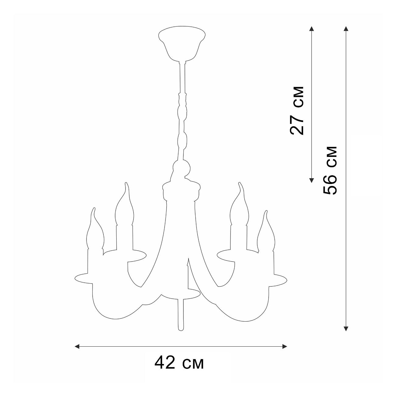 Люстра оснащена 5 лампами с цоколем E14 и мощностью 60 Вт каждая. Это обеспечивает яркое и равномерное освещение на площади до 15 м2.