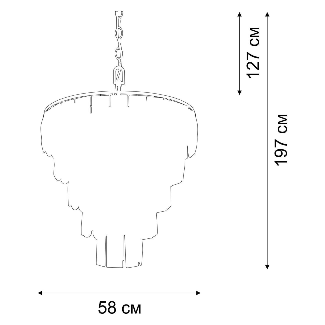 Люстра имеет 21 лампу с цоколем Е14 и мощностью 40 Вт каждая. Это обеспечивает яркое и равномерное освещение на площади до 63 м2.