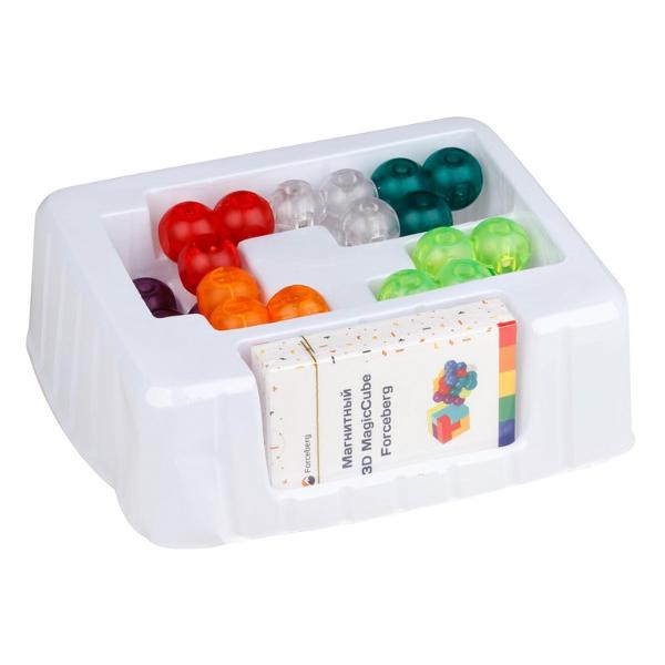 Forceberg 3D Magnet Cube — головоломка магнитного типа из семи элементов для развития логического мышления. Обладает 108 вариантами сборки. Игрушка рекомендована для детей в возрасте от 3 лет. Изготавливается из прозрачного ABS-пластика. Габариты головоломки составляют 6 х 6 х 6 см.