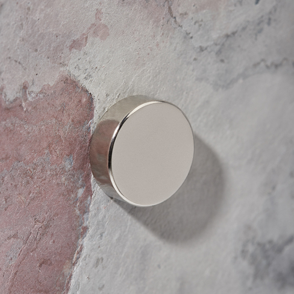 Изделие имеет форму диска размером 40 х 15 мм. От царапин защищает никелевое покрытие. Инструмент подходит для установки в доме металлических полок без монтажа, поиска мелких предметов, удаления данных с магнитных носителей. На строительной площадке он часто заменяет фиксатор при изготовлении железобетонных конструкций.