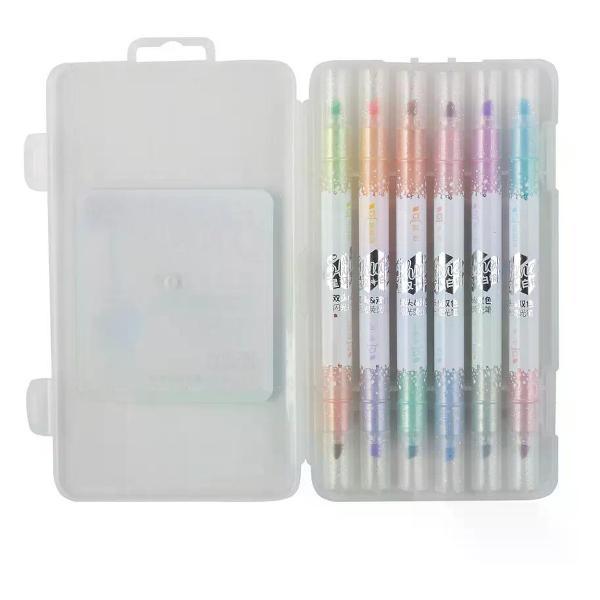Маркер — это универсальный инструмент, который объединяет в себе выразительность цвета, четкость линии и удобство нанесения, становясь незаменимым помощником в учебе, работе, творчестве и быту. Его эргономичный корпус удобно лежит в руке, а продуманная форма колпачка и надежная защелка предотвращают случайное высыхание, обеспечивая долгий срок службы. Палитра оттенков охватывает базовые и акцентные цвета. Яркие маркеры привлекают внимание, пастельные организуют пространство страницы, а насыщенные темные добавляют глубину. Быстросохнущие, ровно дозируемые чернила формируют однородный след без проплешин и подтеков, устойчивы к размазыванию и большинству канцелярских бумаг, а в определенных сериях — к воздействию воды и солнечного света. Для офиса маркер превращает встречи в наглядные сценарии: диаграммы, стрелки, шрифтовые акценты делают идеи ясными; в учебе он помогает структурировать конспекты, выстраивать иерархии и вычленять ключевые мысли. Маркеры уверенно пишут по бумаге, картону, фотобумаге, пластику и стеклу, не просвечивают на плотных листах и не оставляют следов на обратной стороне, что особенно важно для двусторонних заметок и иллюстраций. Выберите один маркер для повседневных задач или соберите продуманную палитру — и каждый штрих станет точным инструментом визуальной коммуникации, который экономит время, усиливает фокус и превращает идеи в понятные, запоминающиеся образы.Набор текстовыделителей, 6 шт, 1-5 мм, скошенный, двусторонний, 12 цветов, блестки, Brigfut, 252484. Торговая марка: Brigfut;