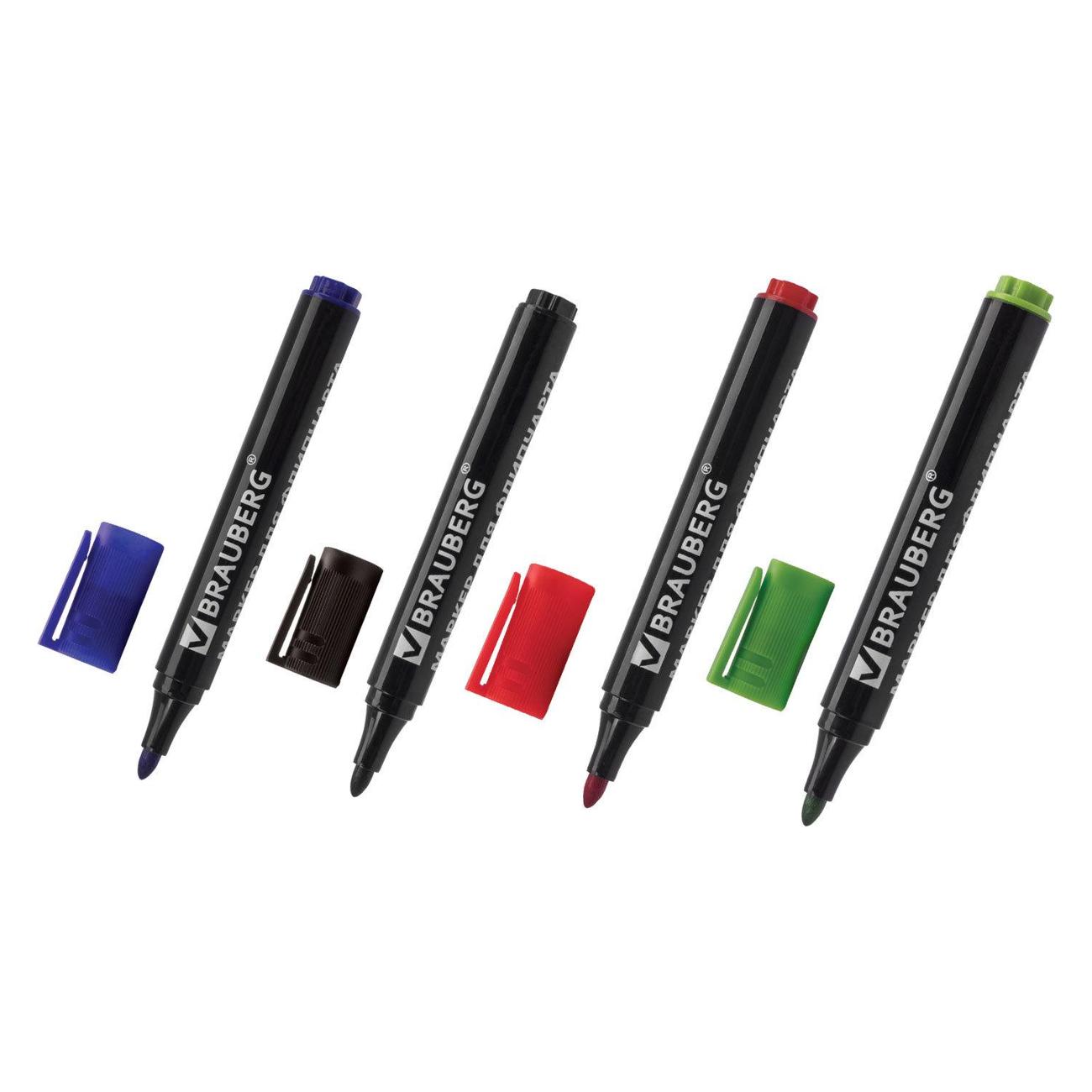 4 цвета в наборе: черный, красный, синий, зеленый. Круглый корпус из пластика, диаметр которого 15 мм. Наконечник круглой формы обеспечивает толщину линии письма 2,5 мм, что позволяет писать крупным шрифтом, который будет хорошо виден. Особая основа чернил не пропитывает бумагу, чернила быстро высыхают и не оставляют разводов. Изделие не перезаправляется. Цвет колпачка соответствует цвету чернил.