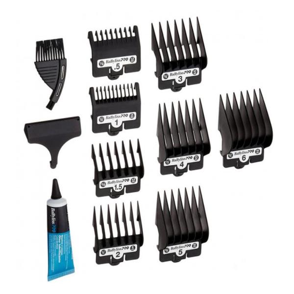 Машинка для стрижки волос BaByliss Pro ChromeFX Digital FX8700E оснащена восемью насадками с пятью уровнями установки длины: от 0,8 мм до 19 мм. Лезвия выполнены из нержавеющей стали, не тупятся и не подвержены коррозии. Время автономной работы прибора составляет 120 минут, полная зарядка аккумулятора длится 180 минут.