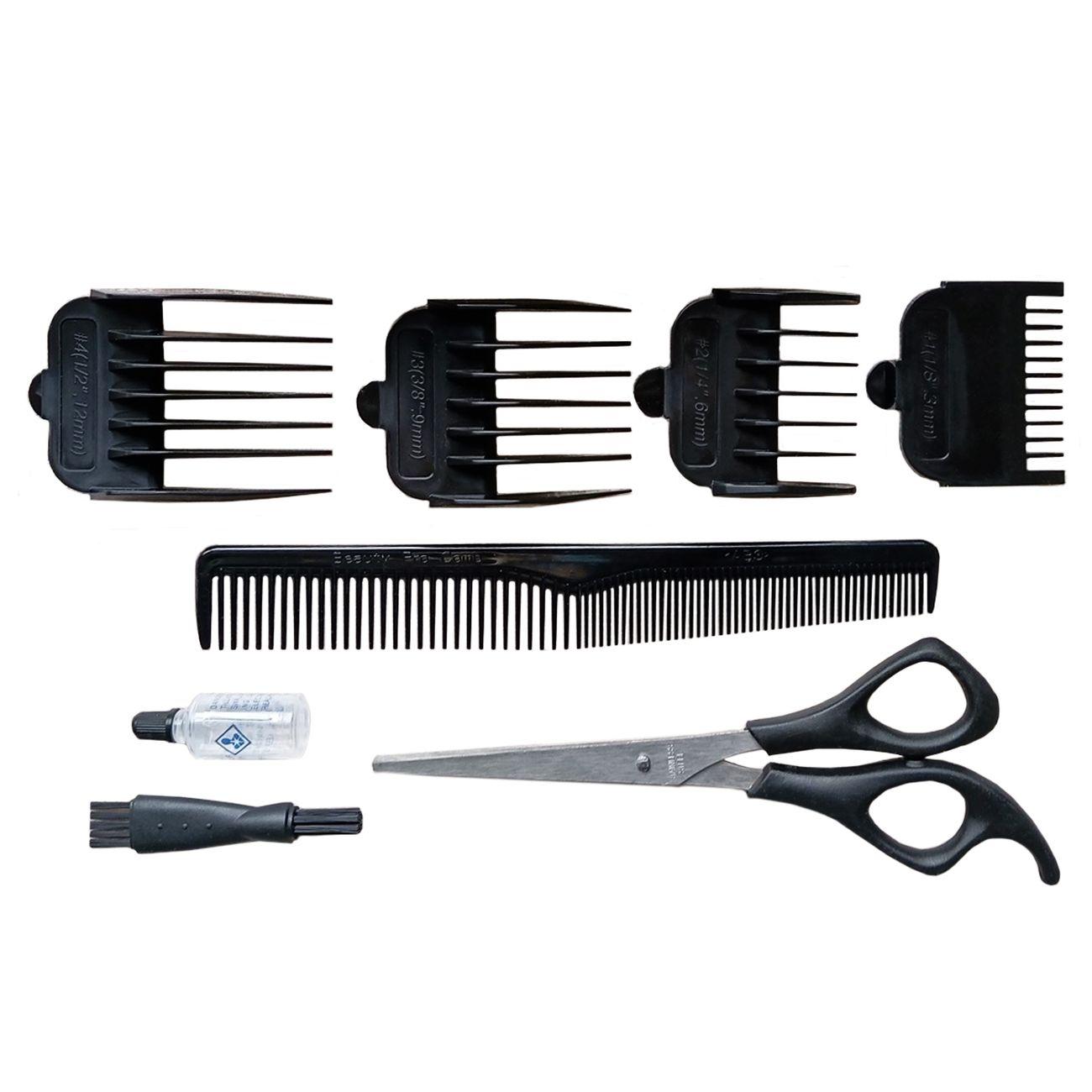 Минимальный срез без насадки ― 1 мм. Ее можно изменить благодаря съемным гребням на 3, 6, 9 и 12 мм. Лезвия выполнены из нержавеющей стали и отличаются высоким качеством заточки. Для поддержания изначальных характеристик ножевого блока предусмотрены масло для смазки и щеточка для чистки. В комплектацию также входят расческа и ножницы.