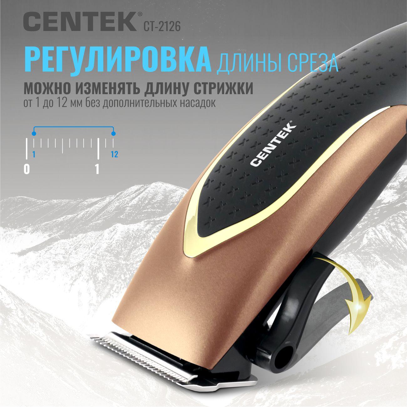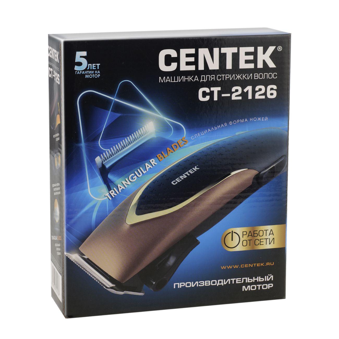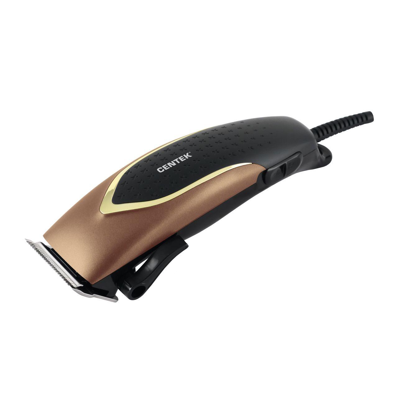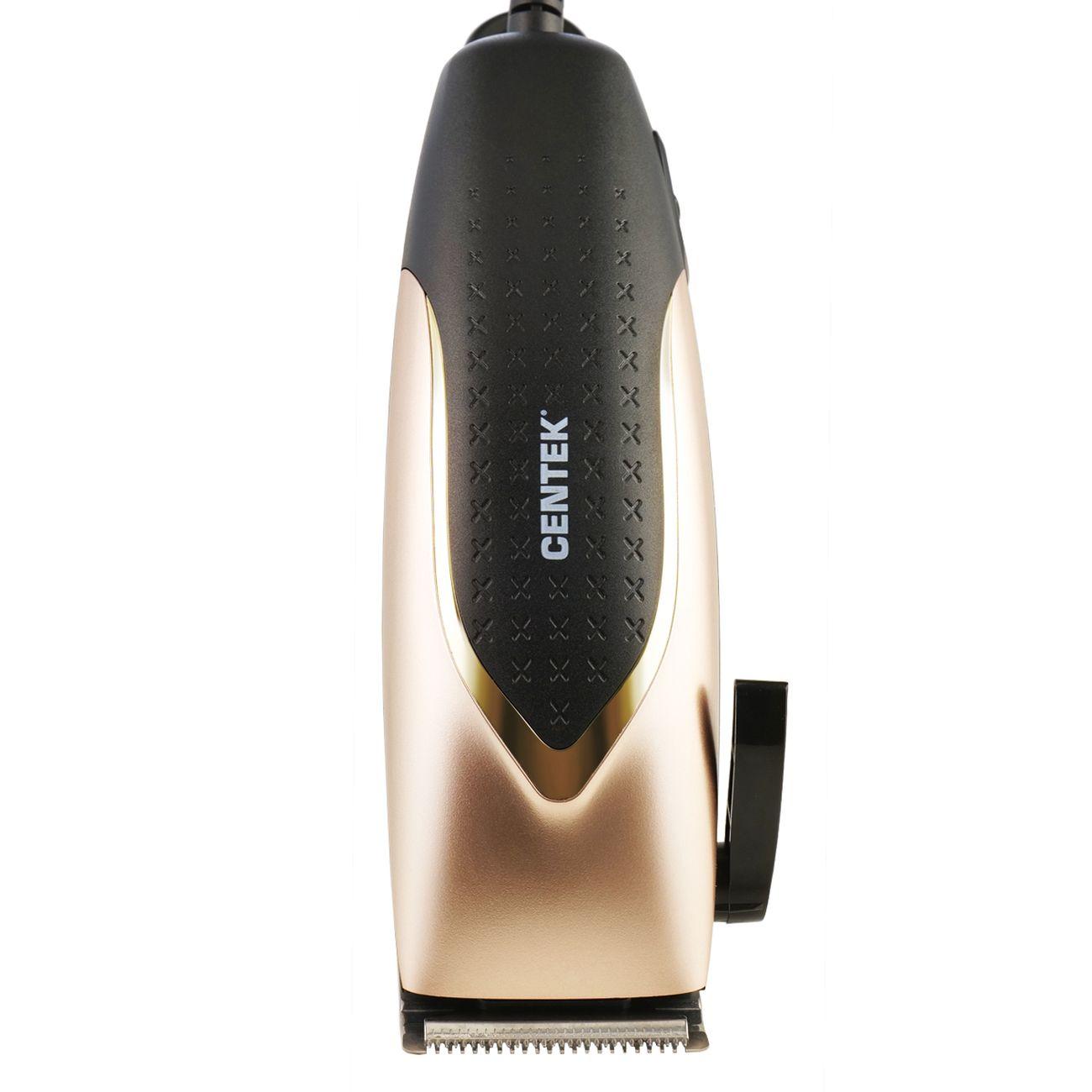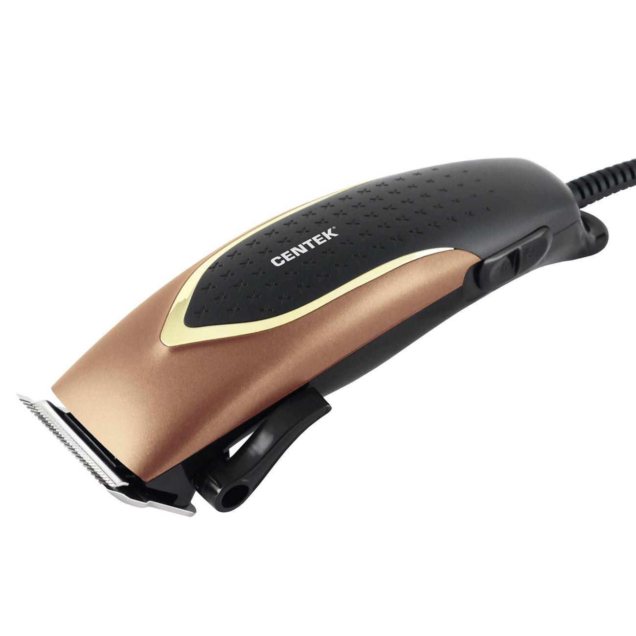 Машинка для стрижки волос Centek CT-2126 удобна в эксплуатации. Она включается одним движением с помощью кнопки, расположенной на рукоятке. Корпус из высокопрочных пластика и металла дополнен прорезиненным покрытием, исключающим скольжение. Длина сетевого шнура равна 1,8 м.