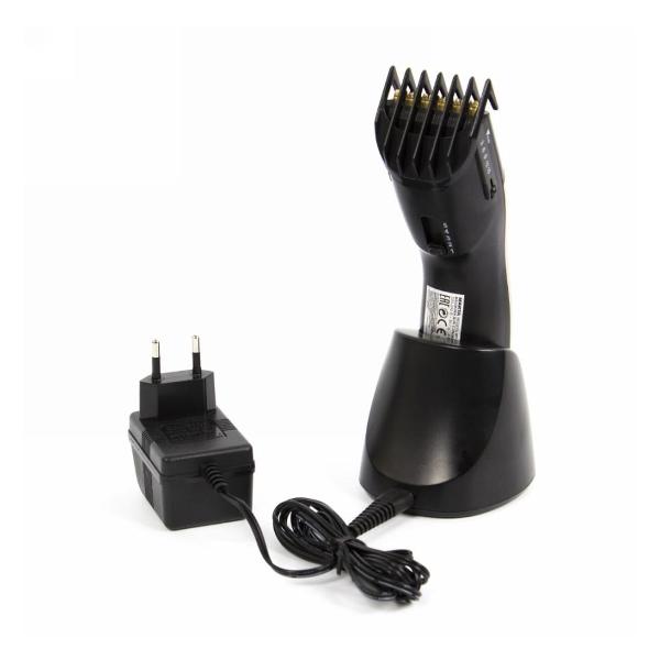Модель обладает пятью установками длины от 3 мм до 15 мм, что дает возможность выбрать наиболее оптимальную. В комплект входят масло для смазки, щетка для очистки и подставка, упрощающая размещение машинки во время зарядки или хранения. Длина сетевого шнура равна 1,7 м. Габаритные размеры модели — 23х8,5х19 см, вес — 540 г.