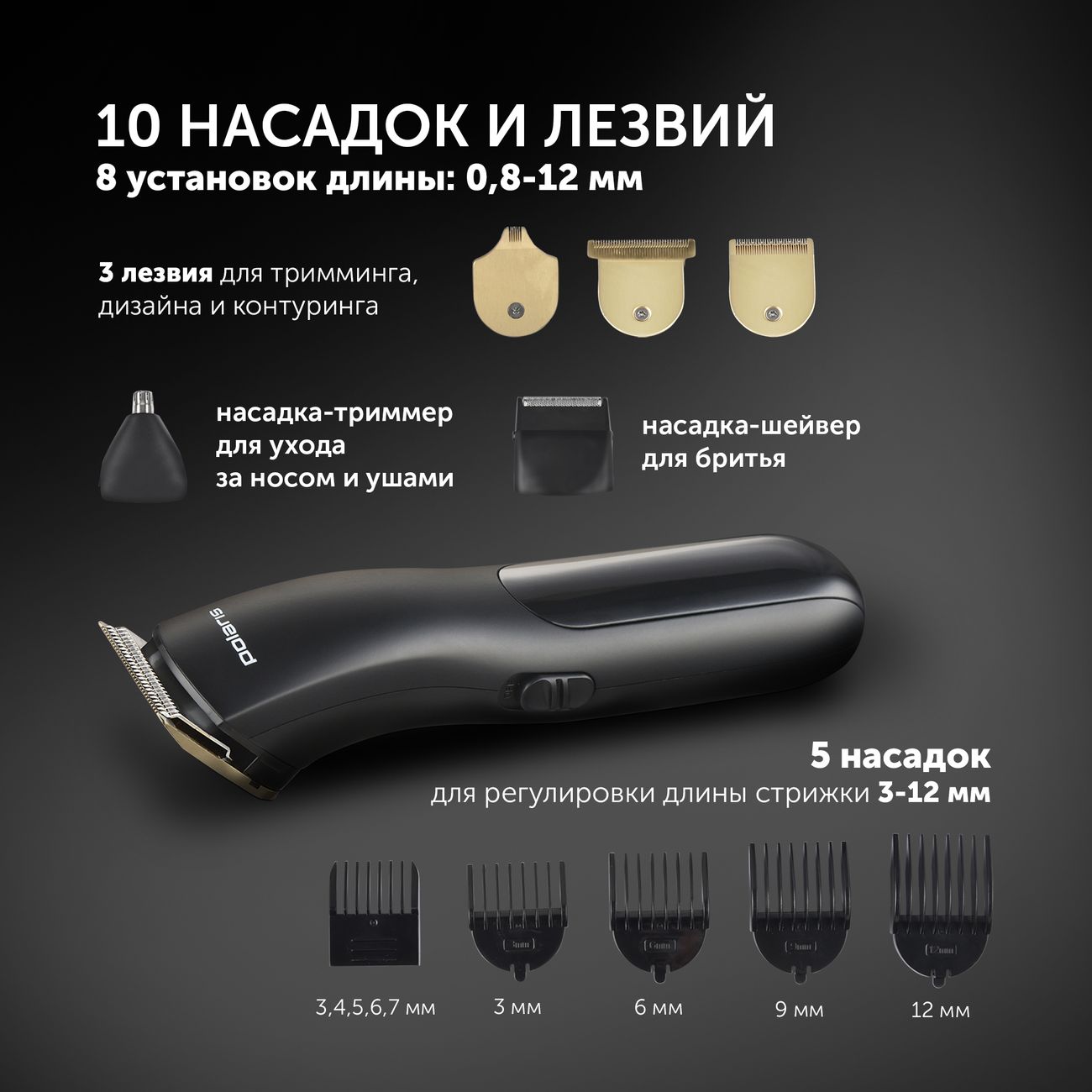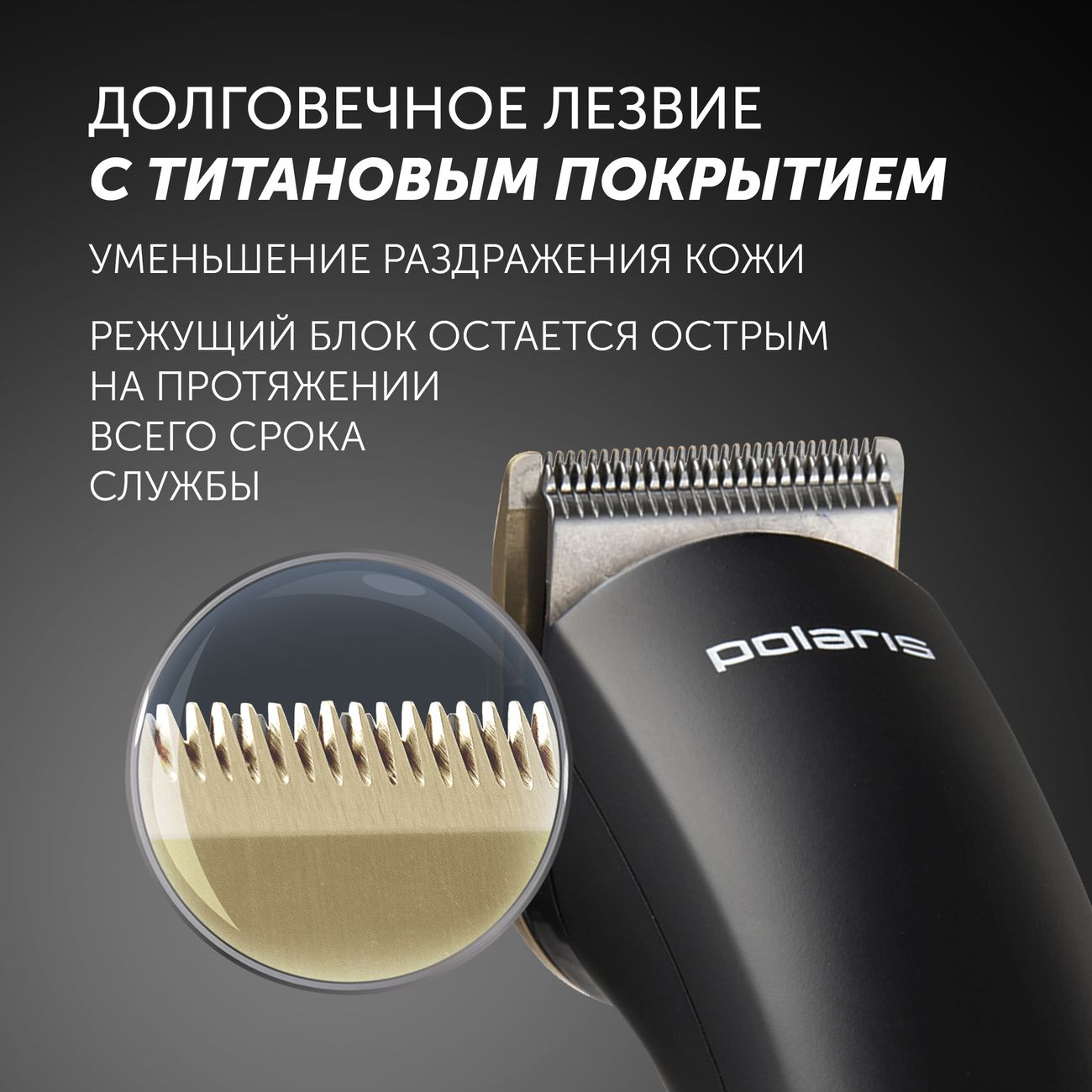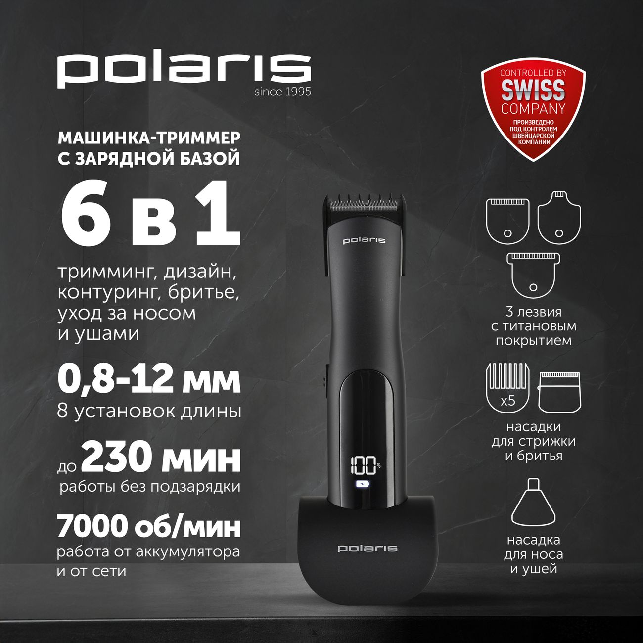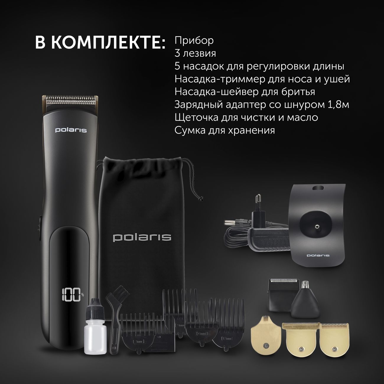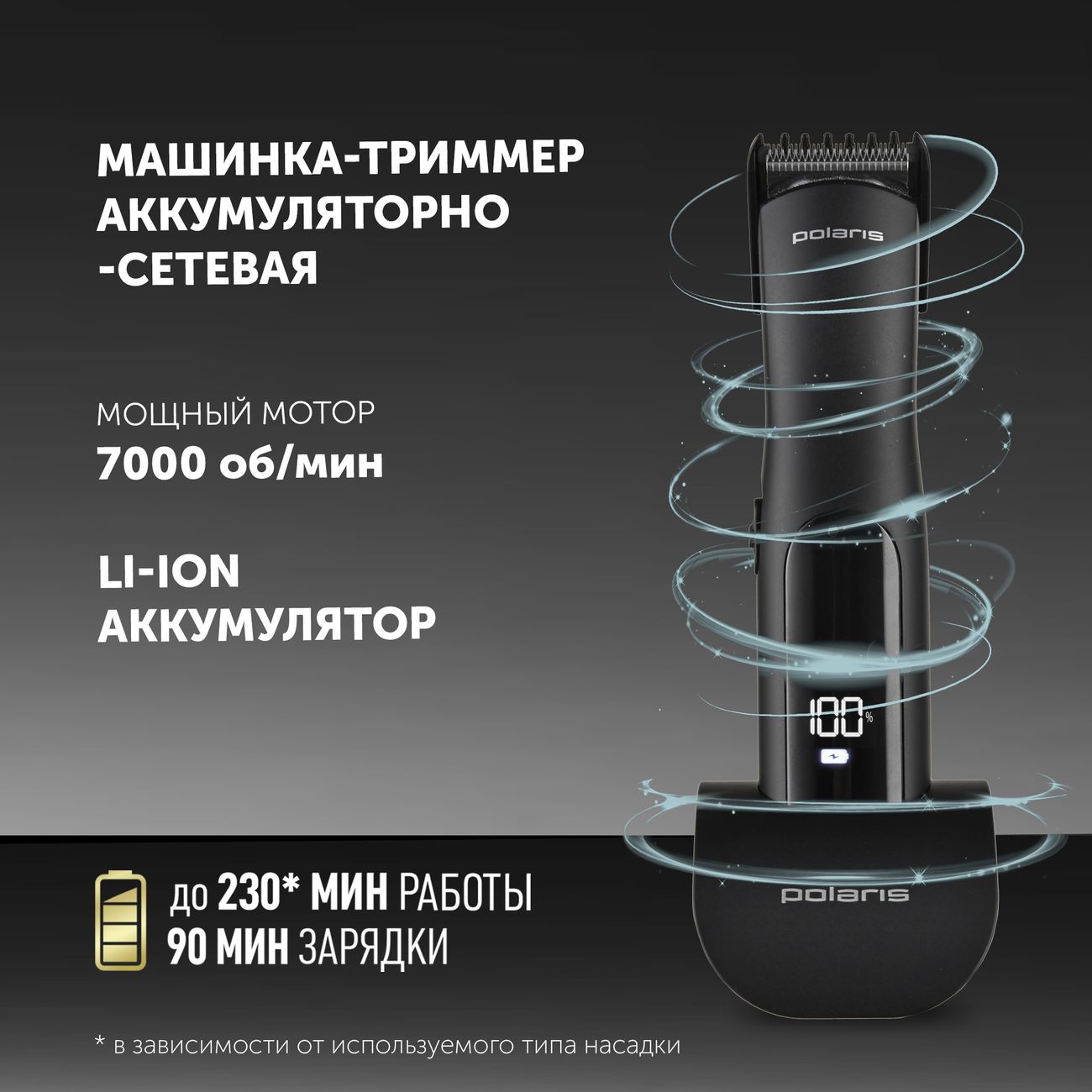 Машинка для стрижки волос Polaris PHC 2400 Black — многофункциональное устройство, выполняющее тримминг, контурирование, дизайн бороды, бритье, удаление волос в носу и ушах.