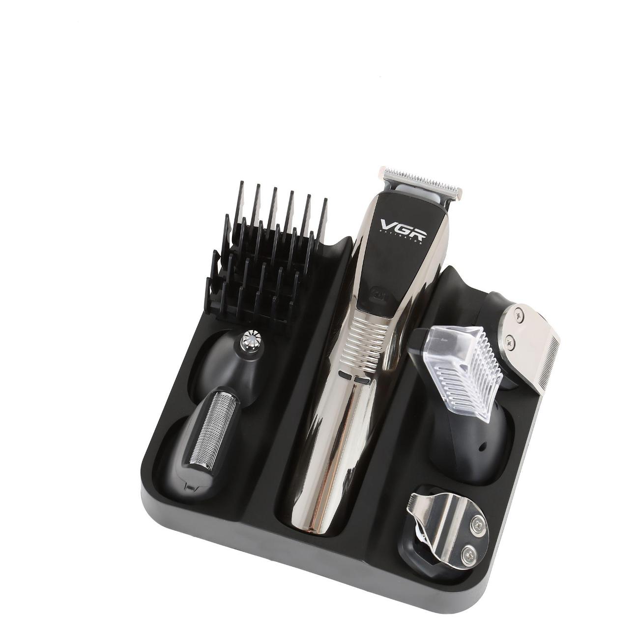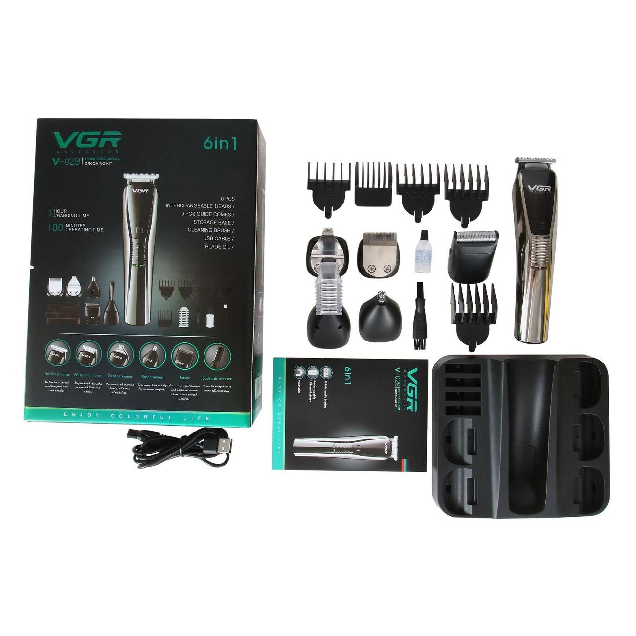 Машинка для стрижки волос VGR V-029 в корпусе черно-серебристой расцветки может работать от электрической сети или встроенного аккумулятора. В комплекте предусмотрены шесть насадок и триммер для удаления волос в носу и ушах. У машинки четыре установки длины. Минимальная и максимальная длина стрижки составляют 3 мм и 12 мм соответственно.