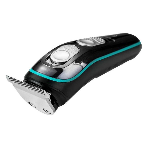 В комплекте — четыре сменные насадки, которые позволяют регулировать длину стрижки в диапазоне от 3 мм до 12 мм. Лезвия из нержавеющей стали не подвержены коррозии и деформации. На корпусе машинки располагается индикация включения и заряда аккумулятора. Корпус сделан из комбинированных материалов: металла и пластика. Управление осуществляется с помощью двух ползунковых переключателей. В комплектацию входят защитная крышка для лезвий, зарядный блок, масло для смазки лезвий, щеточка для их очистки от волос.