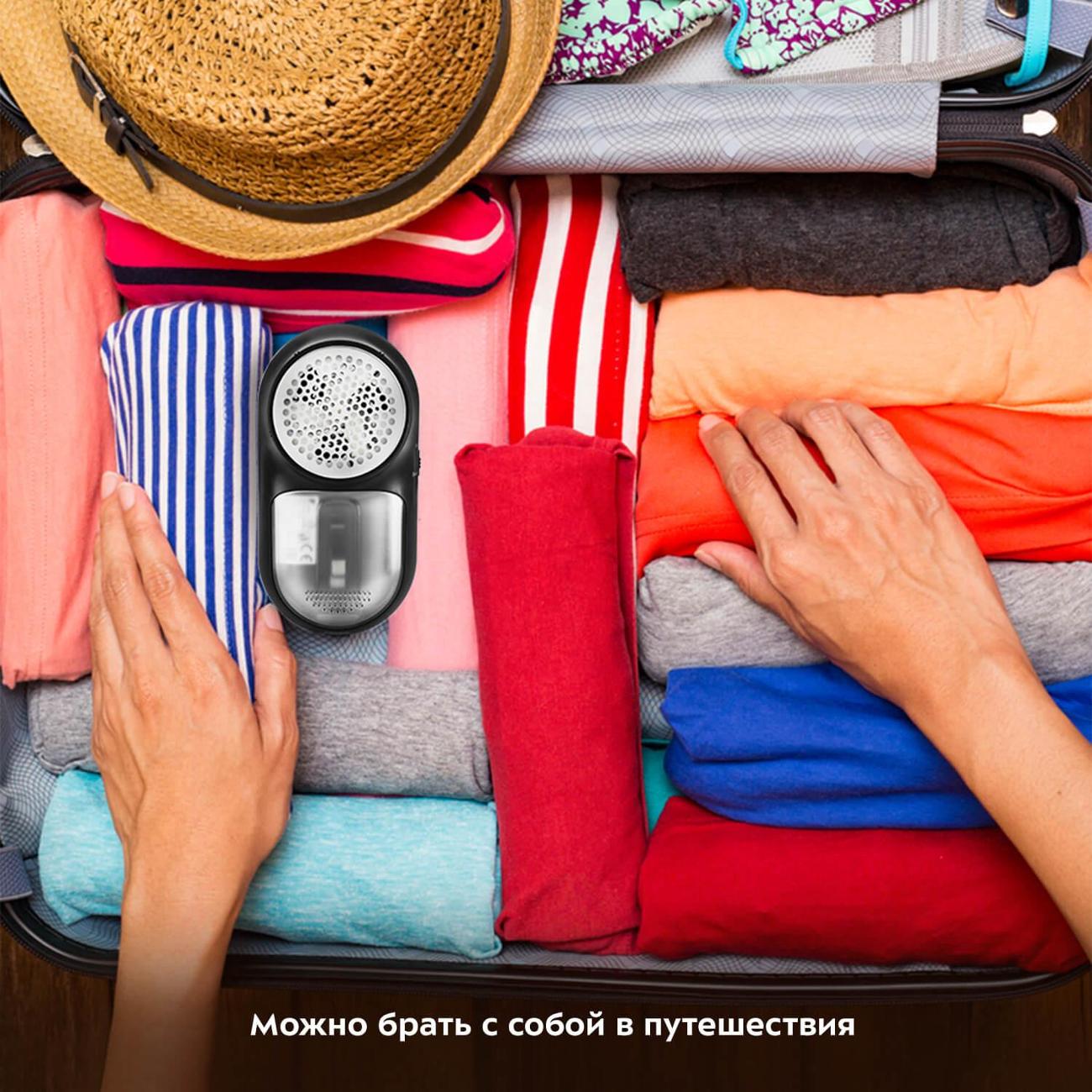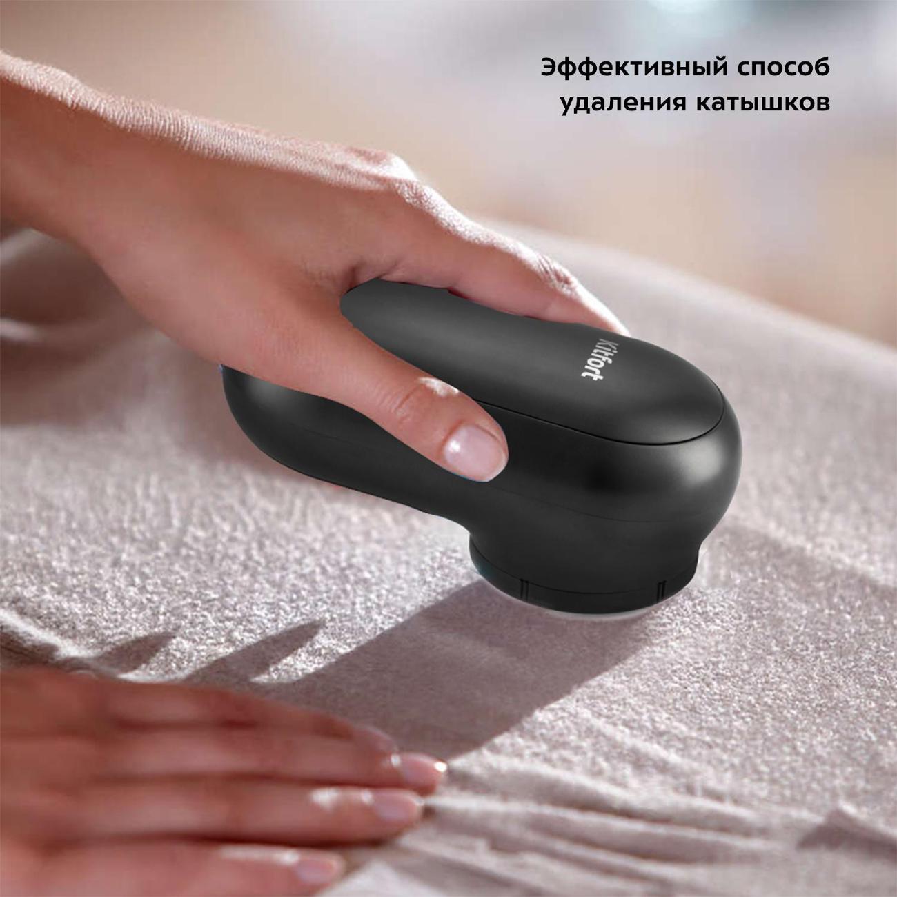 Машинка для ухода за шерстью Kitfort КТ-2040 оборудована режущей головкой диаметром 50 мм. Собранные катышки попадают в специальное отделение.