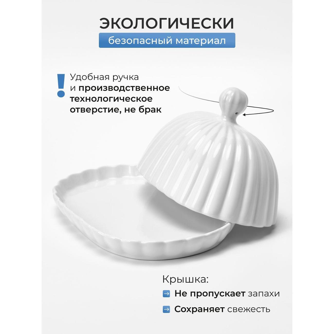 Благородный цвет изделия будет прекрасно сочетаться с любой другой посудой и украсит вашу сервировку, обычный завтрак станет небольшим торжеством. Наша стильная керамическая масленка в виде ракушки с крышкой прекрасно сочетает в себе функциональность и элегантность, позволяя вам эстетично подавать масло и другие деликатесы. Благодаря герметичной крышке, масло сохранит свой натуральный запах и насыщенный вкус, а также не будет впитывать посторонние ароматы из холодильника. Она подходит не только для хранения сливочного масла, но и для подачи нарезки сыра, паштета, ломтиков лимона и даже колбасы. Масленка для сливочного масла с крышкой - незаменимый кухонный аксессуар, соответствует стандартным размерам упаковки масла.