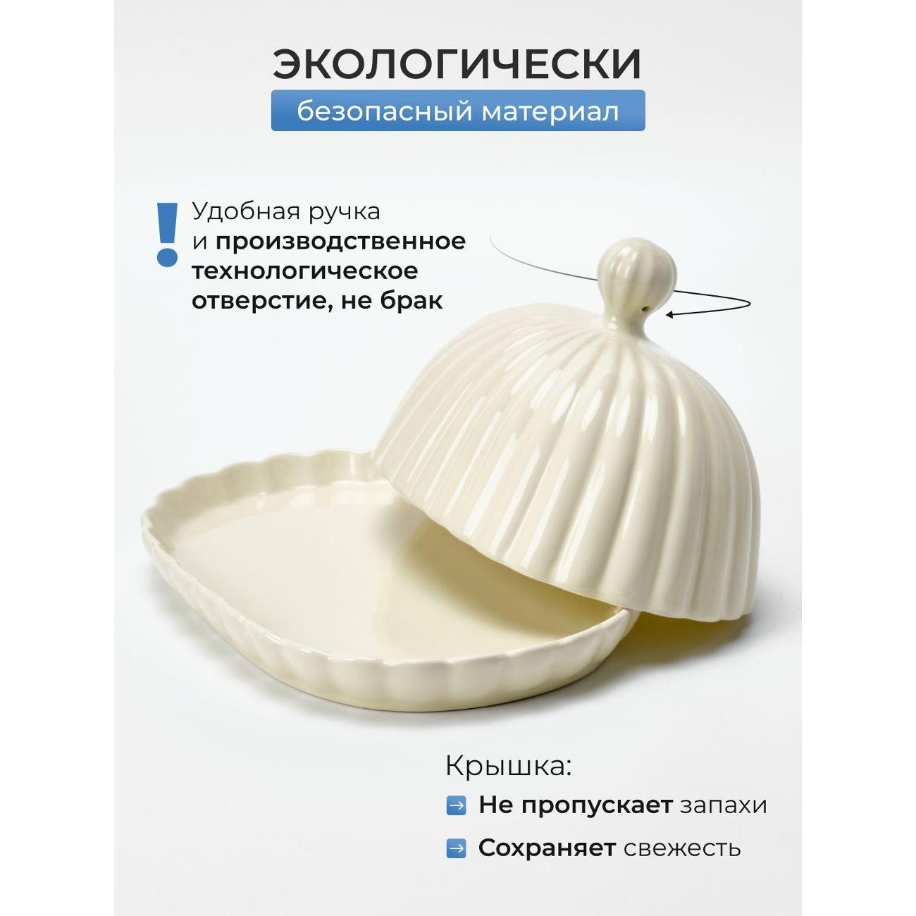 Благородный цвет изделия будет прекрасно сочетаться с любой другой посудой и украсит вашу сервировку, обычный завтрак станет небольшим торжеством. Наша стильная керамическая масленка в виде ракушки с крышкой прекрасно сочетает в себе функциональность и элегантность, позволяя вам эстетично подавать масло и другие деликатесы. Благодаря герметичной крышке, масло сохранит свой натуральный запах и насыщенный вкус, а также не будет впитывать посторонние ароматы из холодильника. Она подходит не только для хранения сливочного масла, но и для подачи нарезки сыра, паштета, ломтиков лимона и даже колбасы. Масленка для сливочного масла с крышкой - незаменимый кухонный аксессуар, соответствует стандартным размерам упаковки масла.