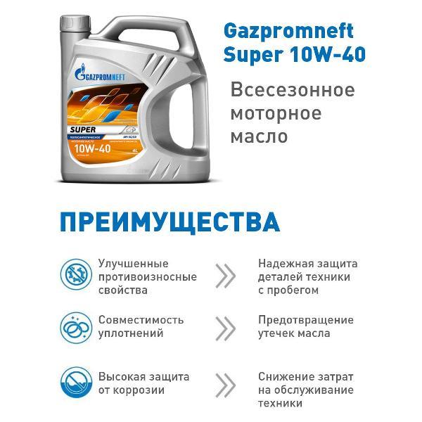 Вы можете купить Масло моторное Gazpromneft Super 10W-40 в магазинах М.Видео по доступной цене. Масло моторное Gazpromneft Super 10W-40: подробное описание, фото и отзывы реальных покупателей, характеристики, возможность скачать инструкции и подобрать аксессуары.