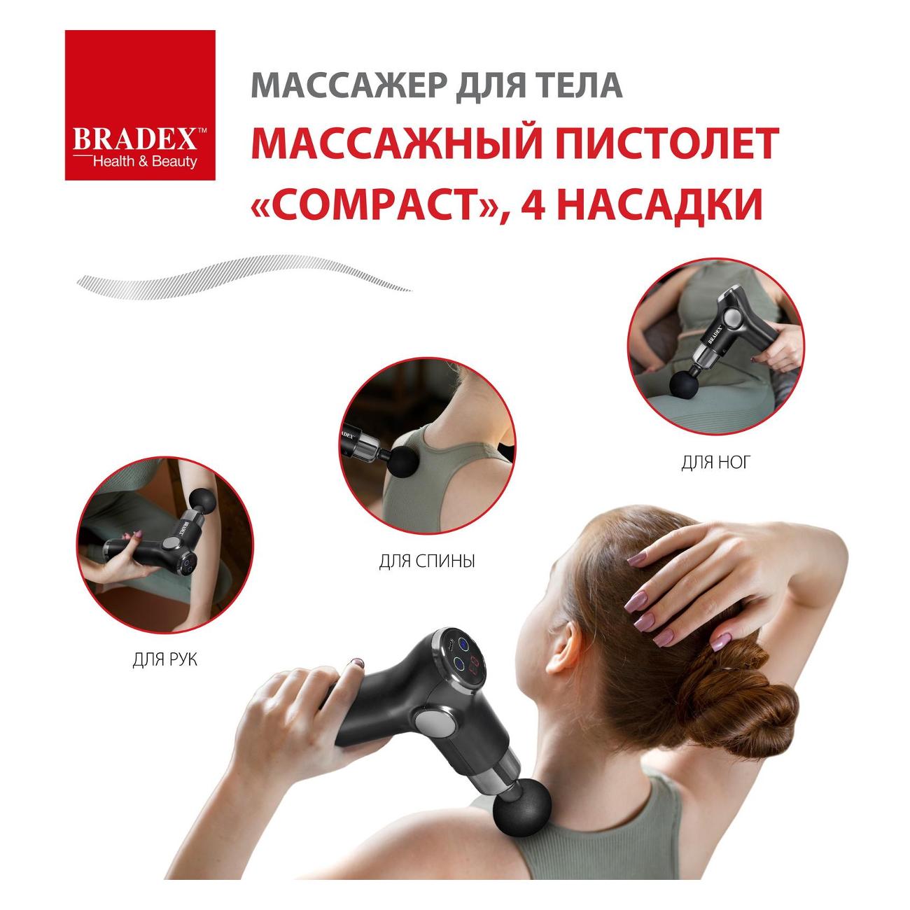 Вибромассажер для тела Bradex KZ 1424 предназначен для проведения точечного и разминающего массажа. Эффективно используется для антицеллюлитного воздействия на область тела. Шесть скоростей позволяют выбрать оптимальный режим работы. Имеет один вариант регулировки интенсивности массажа. В комплекте четыре массажные насадки. Управление — кнопочное. Питание через USB-провод. Габаритные размеры — 14x4,6x14,6 см. Вес — 0,75 кг. Материал корпуса — пластик, цвет — черный. Страна-производитель — Китай. Гарантийный срок — один год.