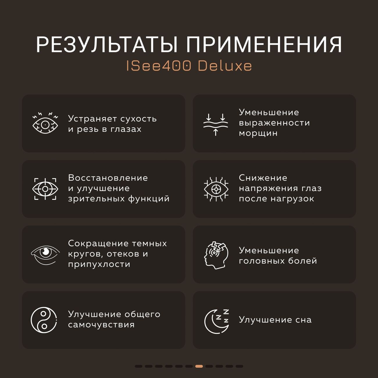 Очень удобный массажер, работает автономно, ложишься где хочешь, но вот в сидячем положении у меня шею заклинивает, объем и вес очков дают о себе знать) Время работы строго регламентирована-15 мин, нет возможности уменьшить. Нет пульта управления, приходится в слепую регулировать, очень рекомендую потренироваться не одевая) Теперь о главном- массаж реально помогает глазкам, снимает усталость, напряжение и отечность, как бонус повышает упругость кожи))) Использую пневмомассаж с прогревом, вибромассаж напоминает долбежку дятла по голове, ни каких приятных ощущений, хм, думаю в отпуске нервишки подлечу и поэкспериментирую с сией функцией))) С музыкой пока не разобралась, написано 6 мелодий, как по мне так одна мелодия играет, в попытке ее отключить, меняю режимы массажера (не туда тыкаю, но это дело опыта), а лучше свою закачать. В общем, не могу сказать, что я прямо в полном восторге от Массажера для глаз Gezatone Deluxe ISee400, но это очень-очень достойный массажер. Поэтому, конечно, рекомендую к приобретению - приятный расслабляющий массаж гарантирован!