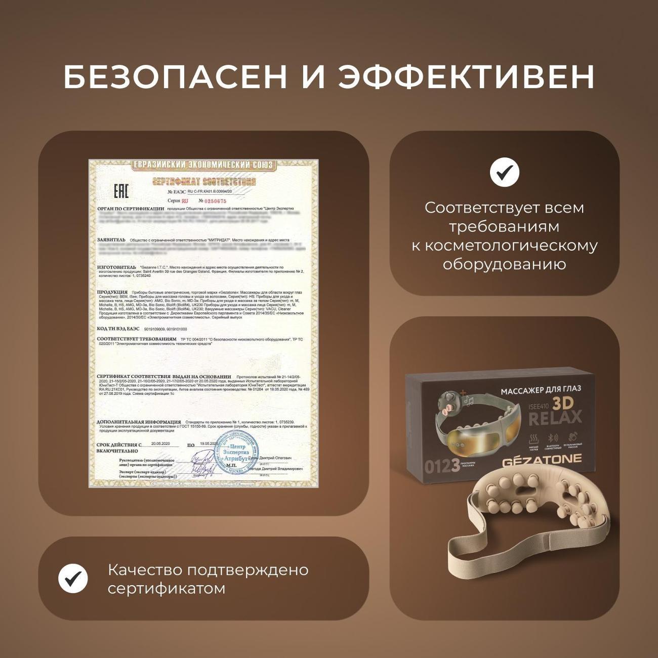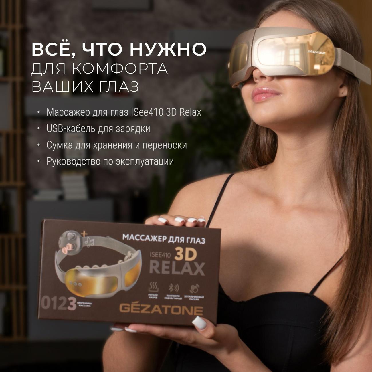 ISee410 3D Relax от Gezatone — устройство для уменьшения усталости глаз и коррекции эстетических изменений периорбитальной зоне. Основой конструкции служит система из 16 мягких «пальчиков», обеспечивающих 3D-вибромассаж. Конфигурация обеспечивает направленное воздействие на ключевые точки, связанные с напряжением зрительных мышц. Вибрация высокой частоты усиливает лимфодренаж, что способствует уменьшению припухлостей и снижению ощущения тяжести в области глаз.