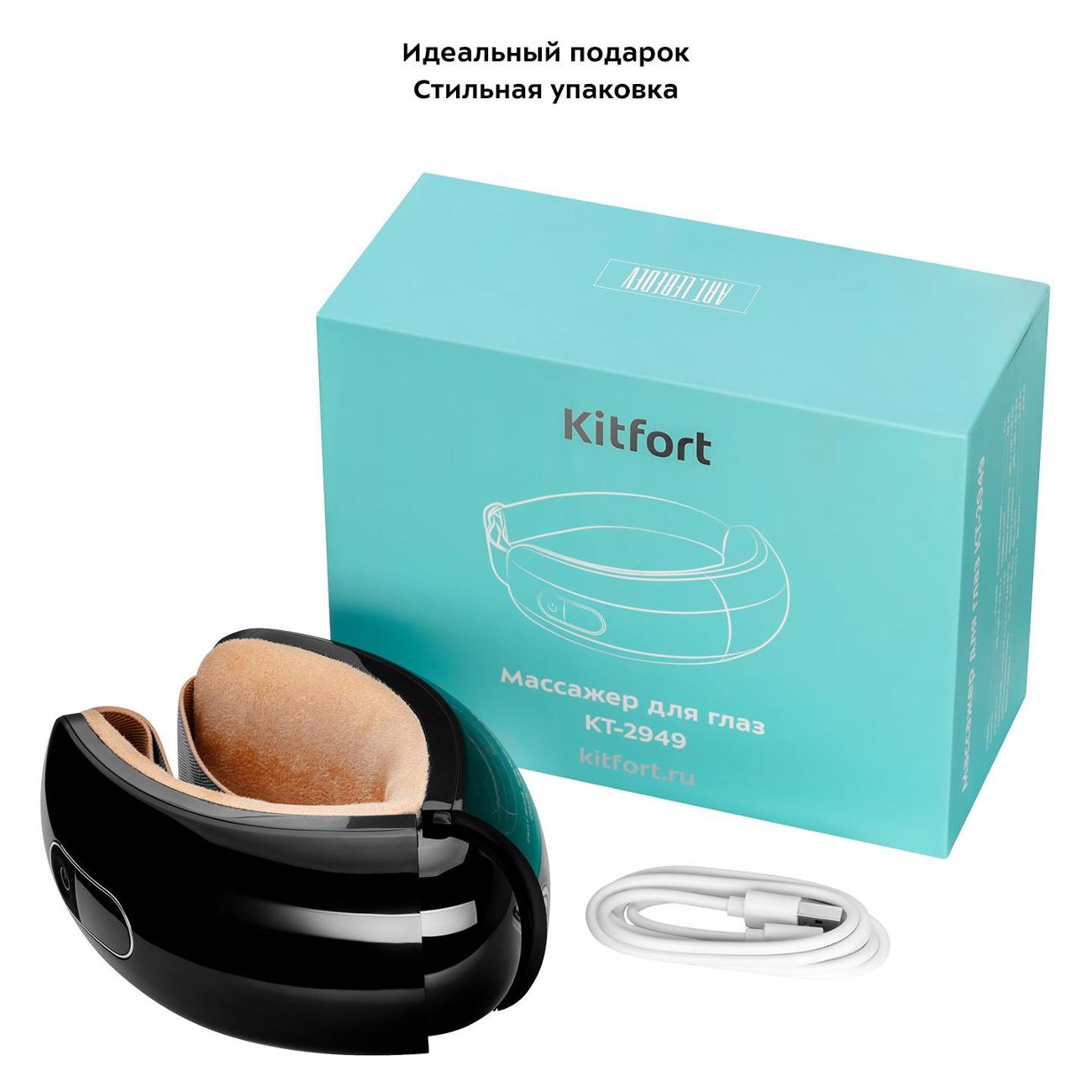 Массажер для глаз Kitfort КТ-2949 отличается легкой складной конструкцией из пластика. Выполнен в форме очков. Фиксируется на голове при помощи эластичного ремня, регулируемого по длине. Сбоку размещена панель управления. Доступна работа в четырех различных режимах: сжатие, нагрев, вибрация и музыка. Благодаря встроенному модулю Bluetooth возможна дополнительная функция аудиотерапии ─ во время массажа можно включить любимую музыкальную композицию через смартфон.