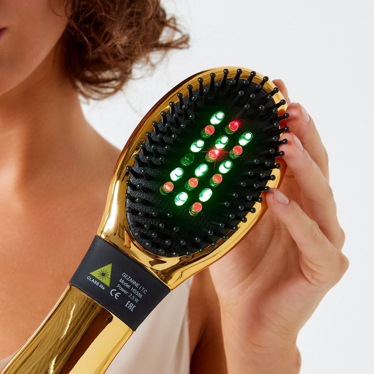 HS588 от Gezatone — лазерный массажер в форме расчески, разработанный для замедления выпадения волос и нормализации состояния кожи головы. Основой работы прибора является комбинация низкоинтенсивного лазера и зеленой хромотерапии. Лазерное излучение длиной волны 655 нм воздействует на глубокие слои кожи, стимулирует образование клеточной энергии, активизирует кровообращение и обменные процессы вокруг волосяных фолликулов. В результате укрепляются активные луковицы, пробуждаются «спящие», ускоряется рост новых волос. Инфракрасный спектр также оказывает антибактериальное действие, уменьшая количество патогенных микроорганизмов, которые вызывают зуд, перхоть и повышенную жирность кожи головы.