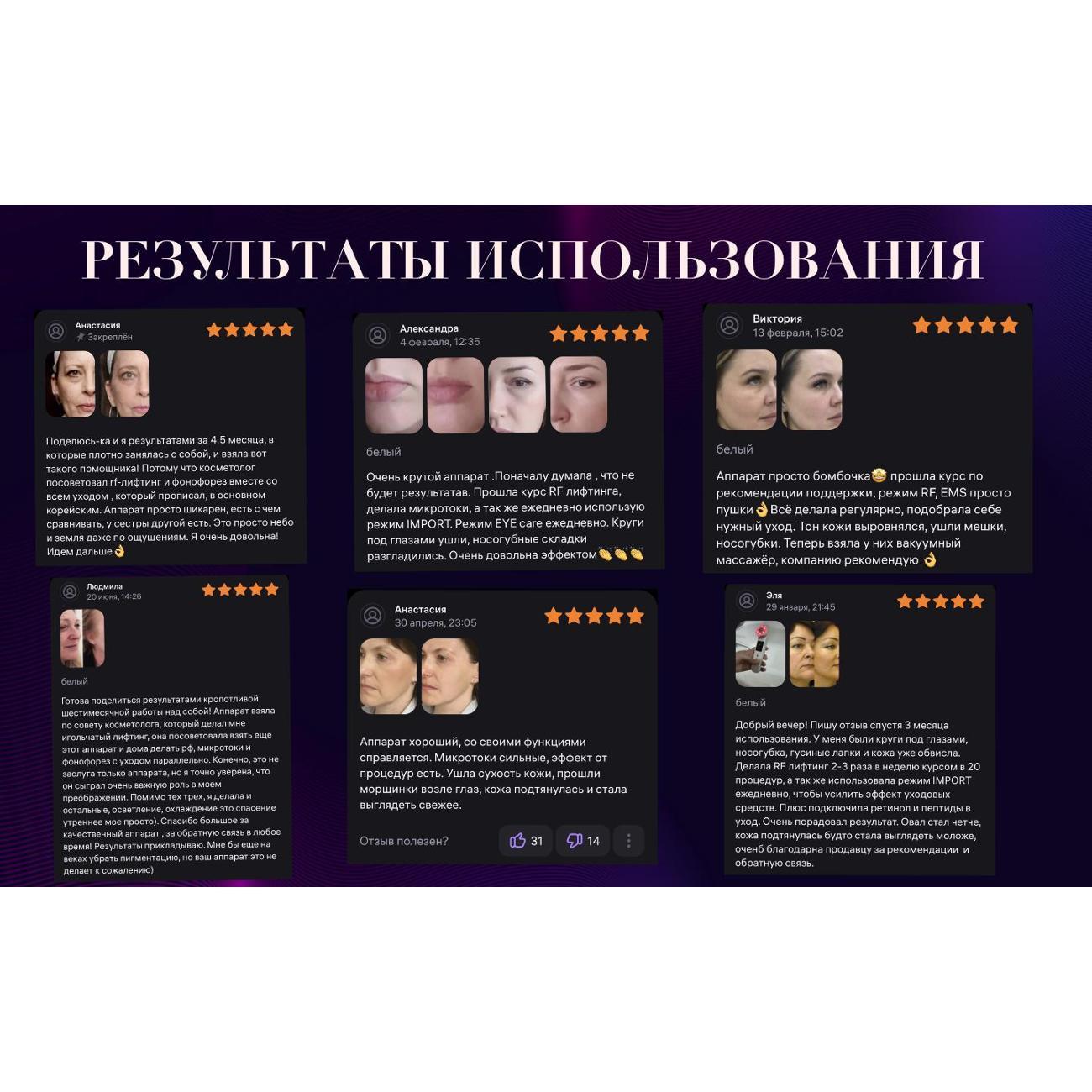 Многофунциональный массажер для лица и шеи от сертифицированного в России бренда Kart House-аппарат для лица, оснащен передовыми технологиями микротокового массажа и rf лифтинга, намеренно созданными для достижения невероятных результатов. Он представляет собой косметический аппарат, призванный дать потребителю уникальное ощущение роскоши и комфорта прямо у себя дома.