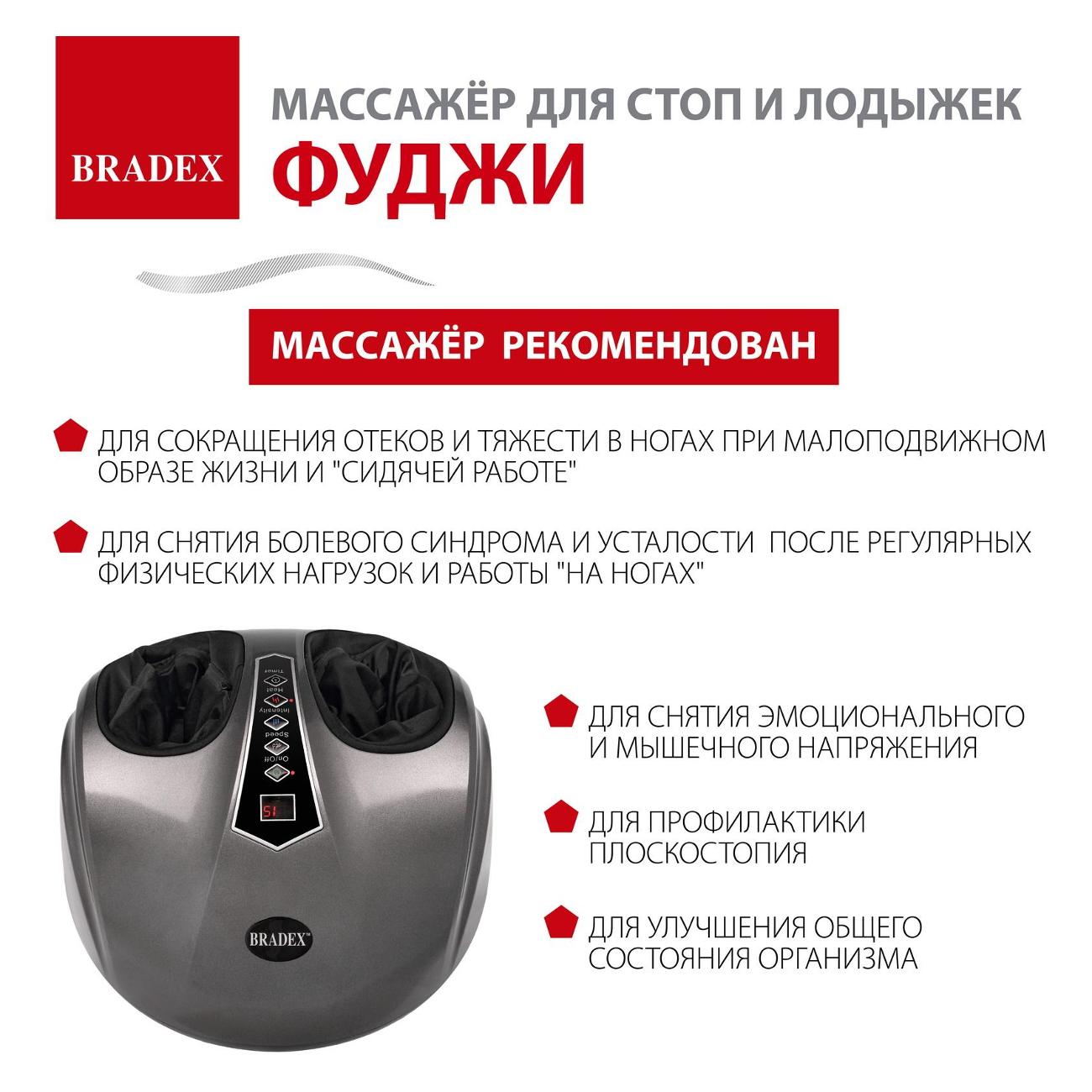 Вы можете купить Массажер для ног Bradex ФУДЖИ KZ 1173 в магазинах М.Видео по доступной цене. Массажер для ног Bradex ФУДЖИ KZ 1173: подробное описание, фото и отзывы реальных покупателей, характеристики, возможность скачать инструкции и подобрать аксессуары.