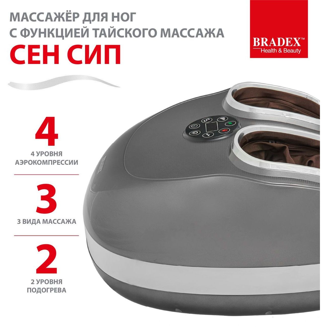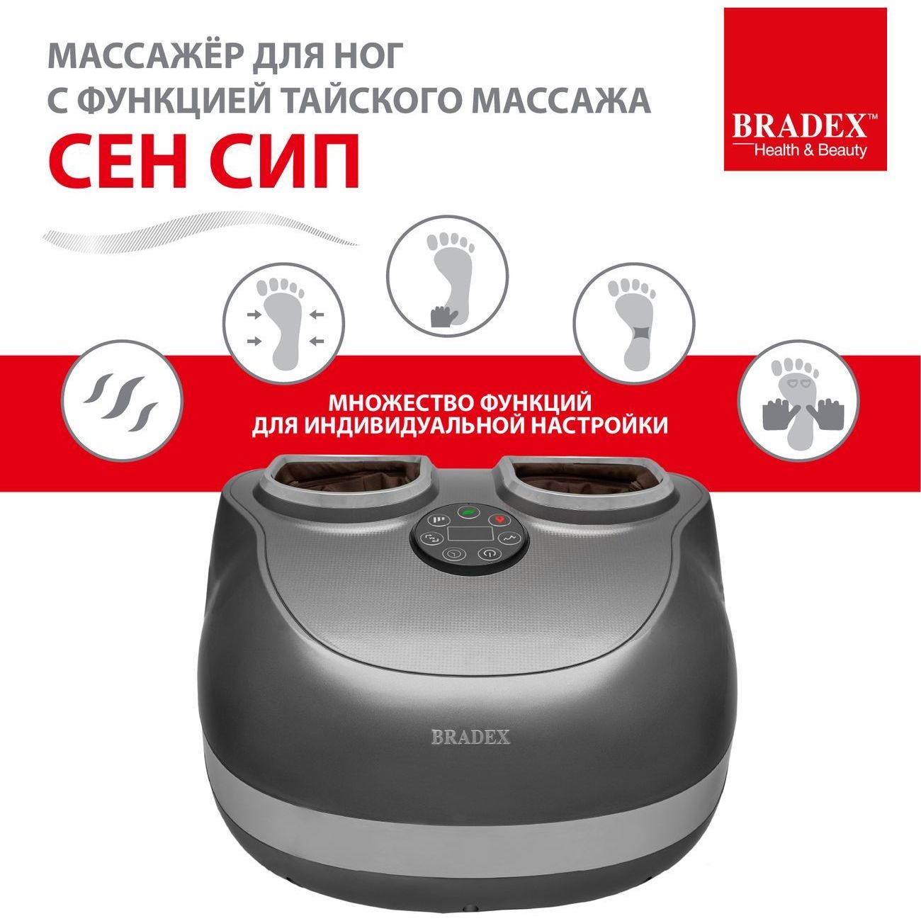 Вы можете купить Массажер для ног Bradex KZ 0569 СенСип с тайским массажем в магазинах М.Видео по доступной цене. Массажер для ног Bradex KZ 0569 СенСип с тайским массажем: подробное описание, фото и отзывы реальных покупателей, характеристики, возможность скачать инструкции и подобрать аксессуары.